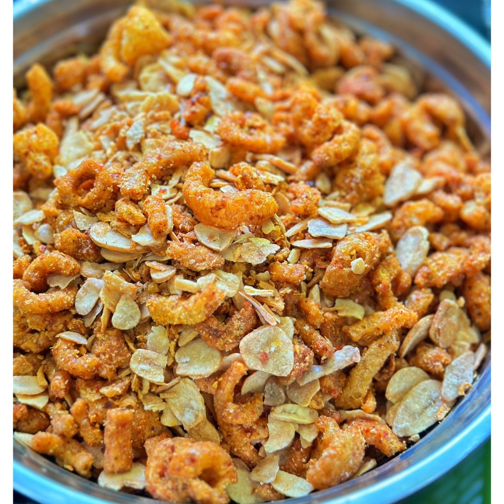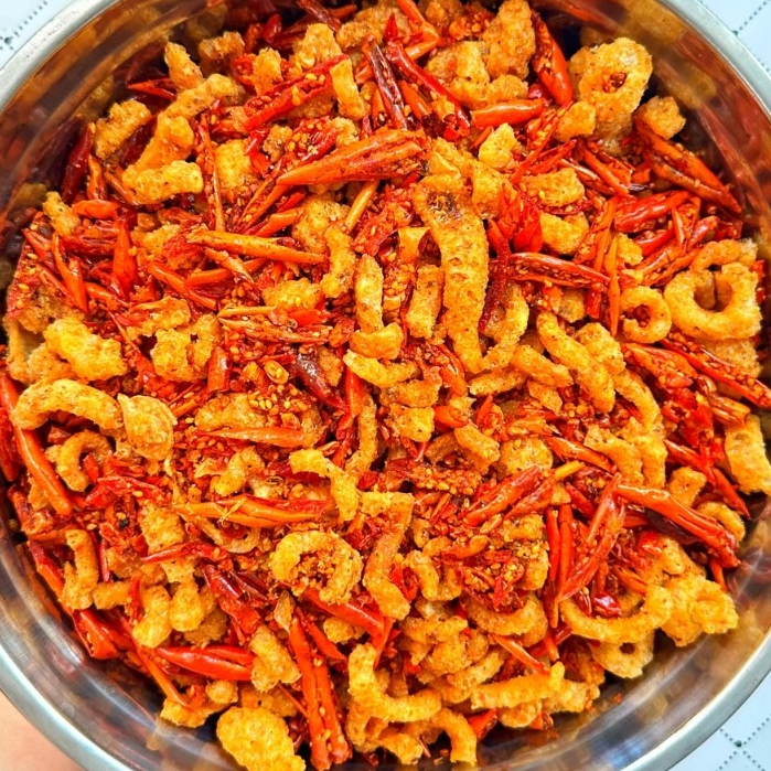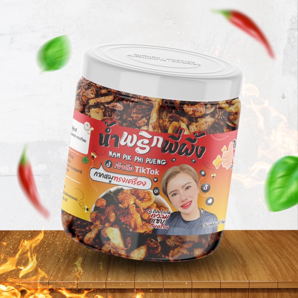 น้ำพริกพี่ผึ้ง(เจ้าดังTikTok) แคบหมูกระจกทรงเครื่อง รสชาติเข้มข้น!! จัดจ้านเผ็ดกำลังทานอร่อย 100g.
