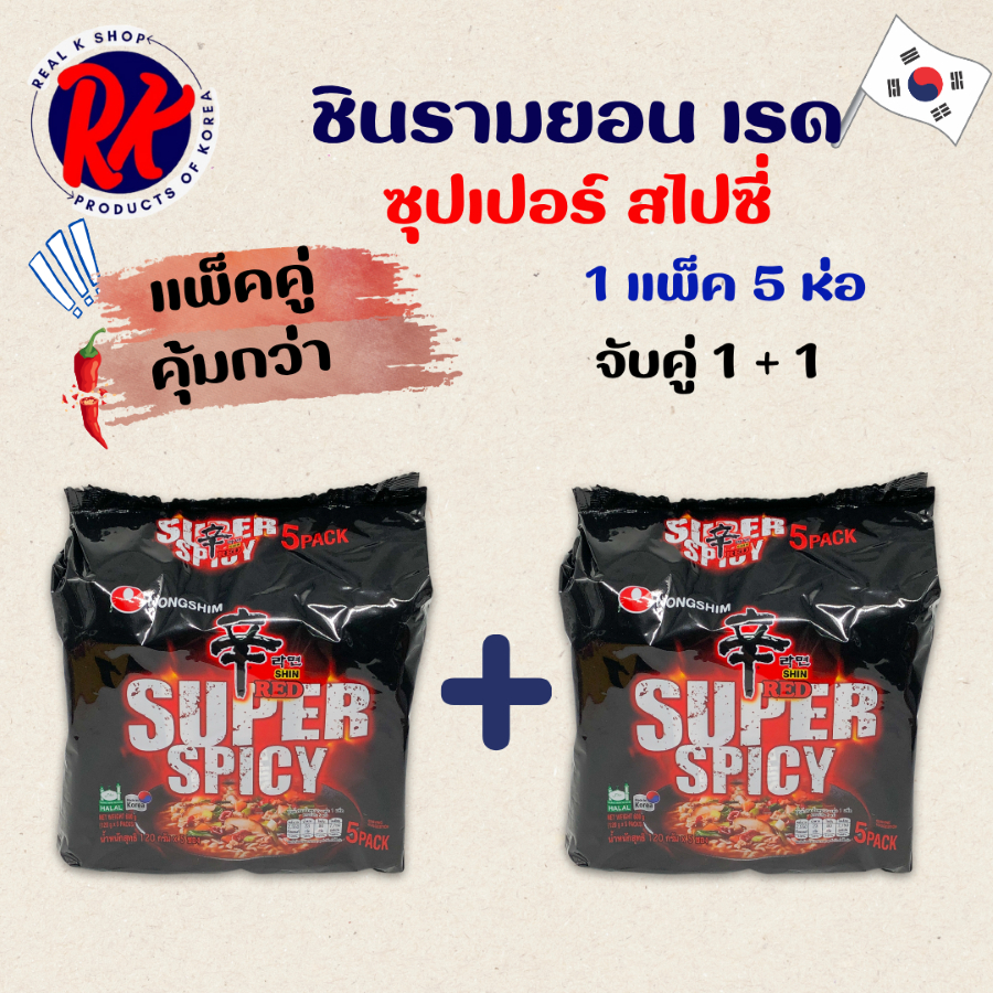 เซ็ตคู่ 1 + 1 แพ็ค ชินรามยอน เรด ซุปเปอร์ สไปซี่ 🍜รสเผ็ดมาก🍜 SHIN RED SUPER SPICY มาม่าเกาหลี 신라면