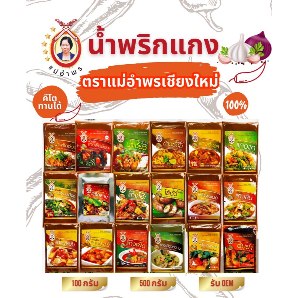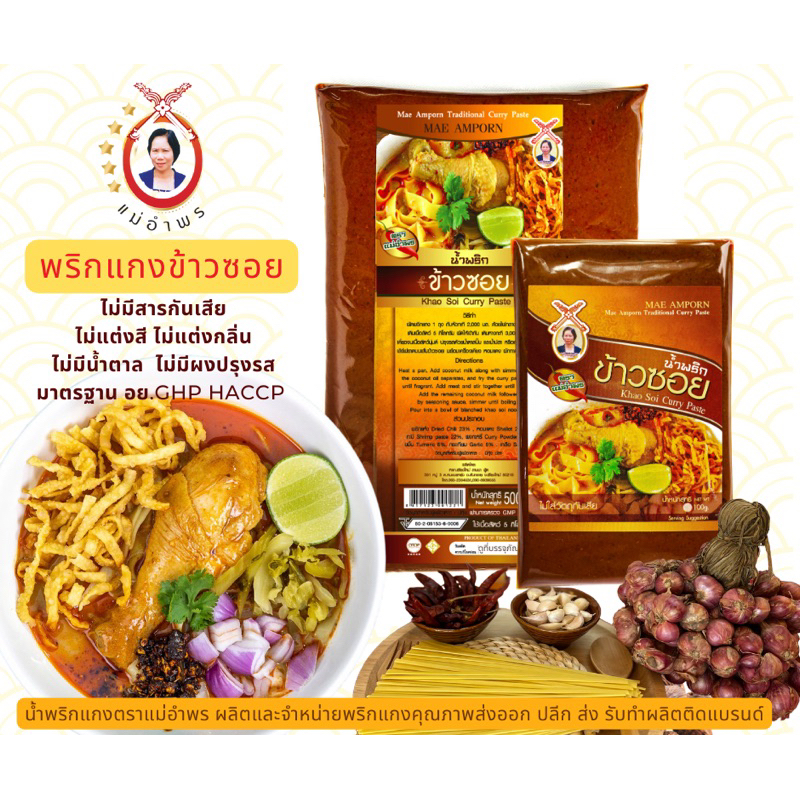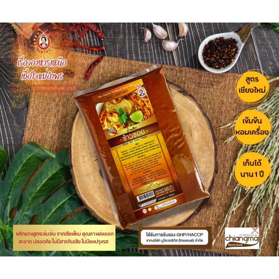 น้ำพริกข้าวซอยตราแม่อำพร 500 กรัม OTOP ห้าดาว เสริฟได้30ที่ ข้าวซอยเชียงใหม่ เข้มข้น คุณภาพส่งออก