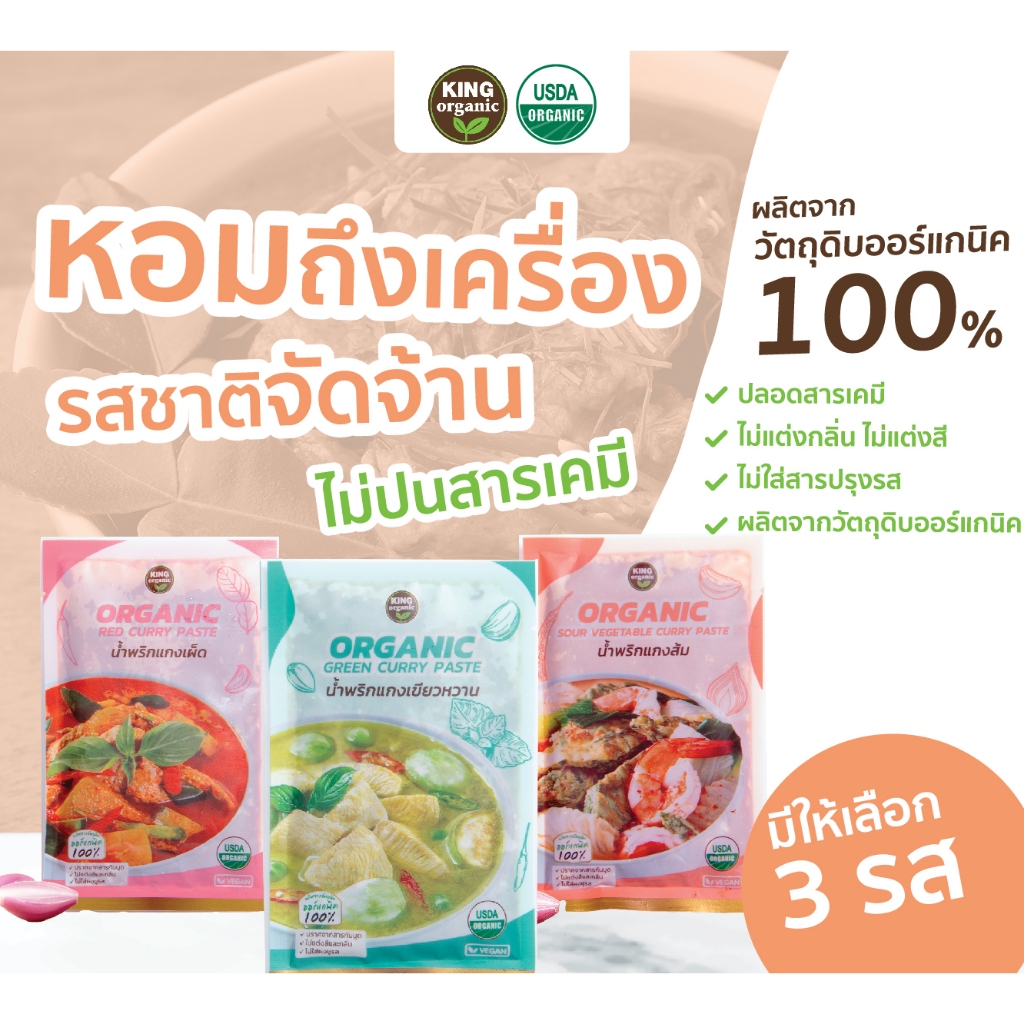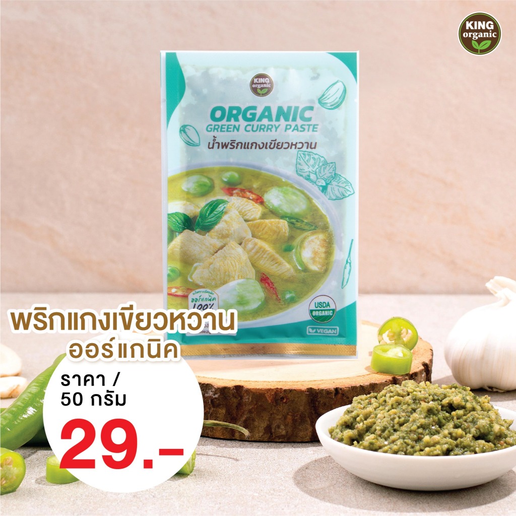 พริกแกงเขียวหวานออร์แกนิค 50g | สูตรลดโซเดียม ปลอดสารเคมี King Organic