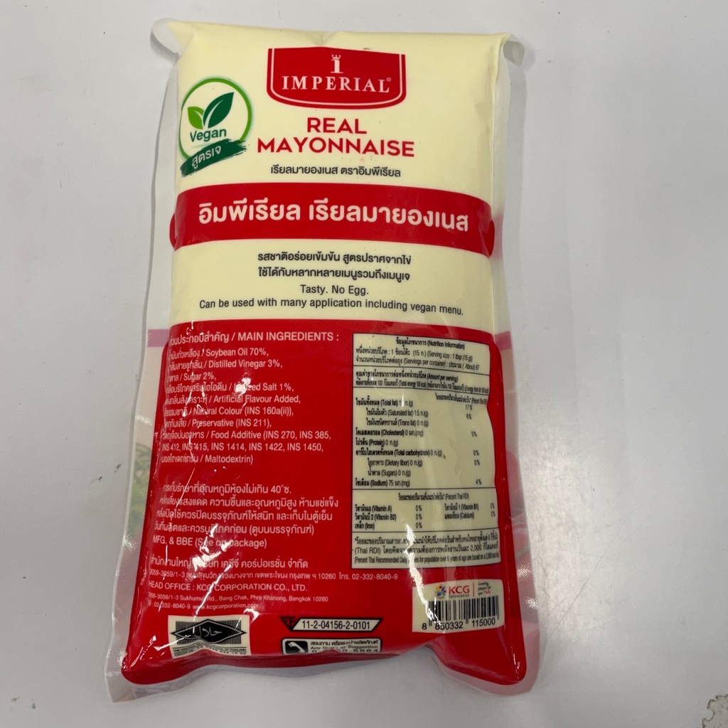 (สูตร เจ) Imperial Vegetarian Real Mayonnaise อิมพีเรียล เรียล มายองเนส 1 กิโลกรัม