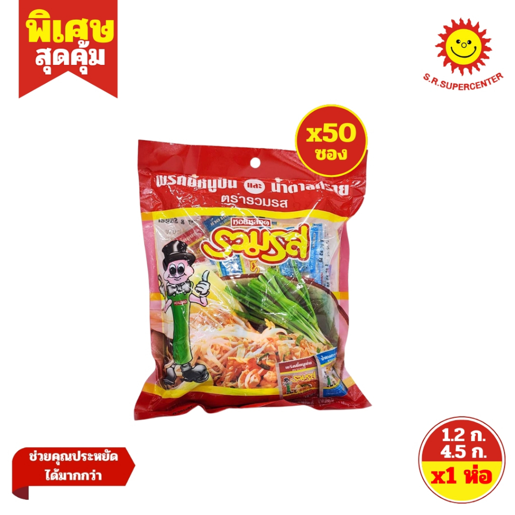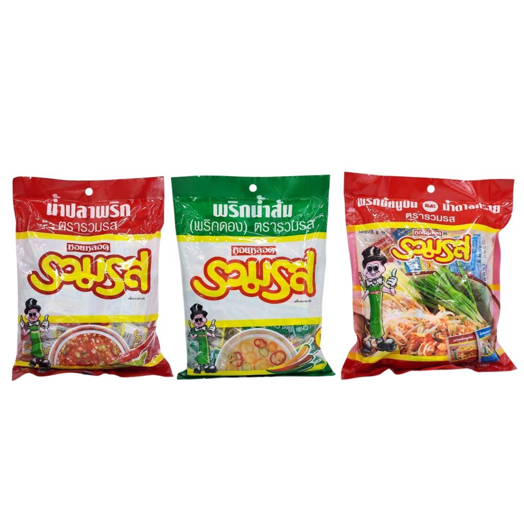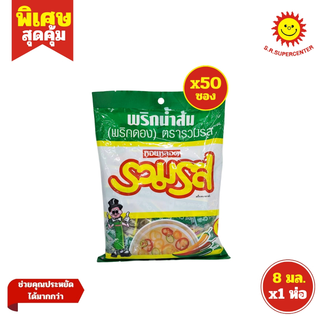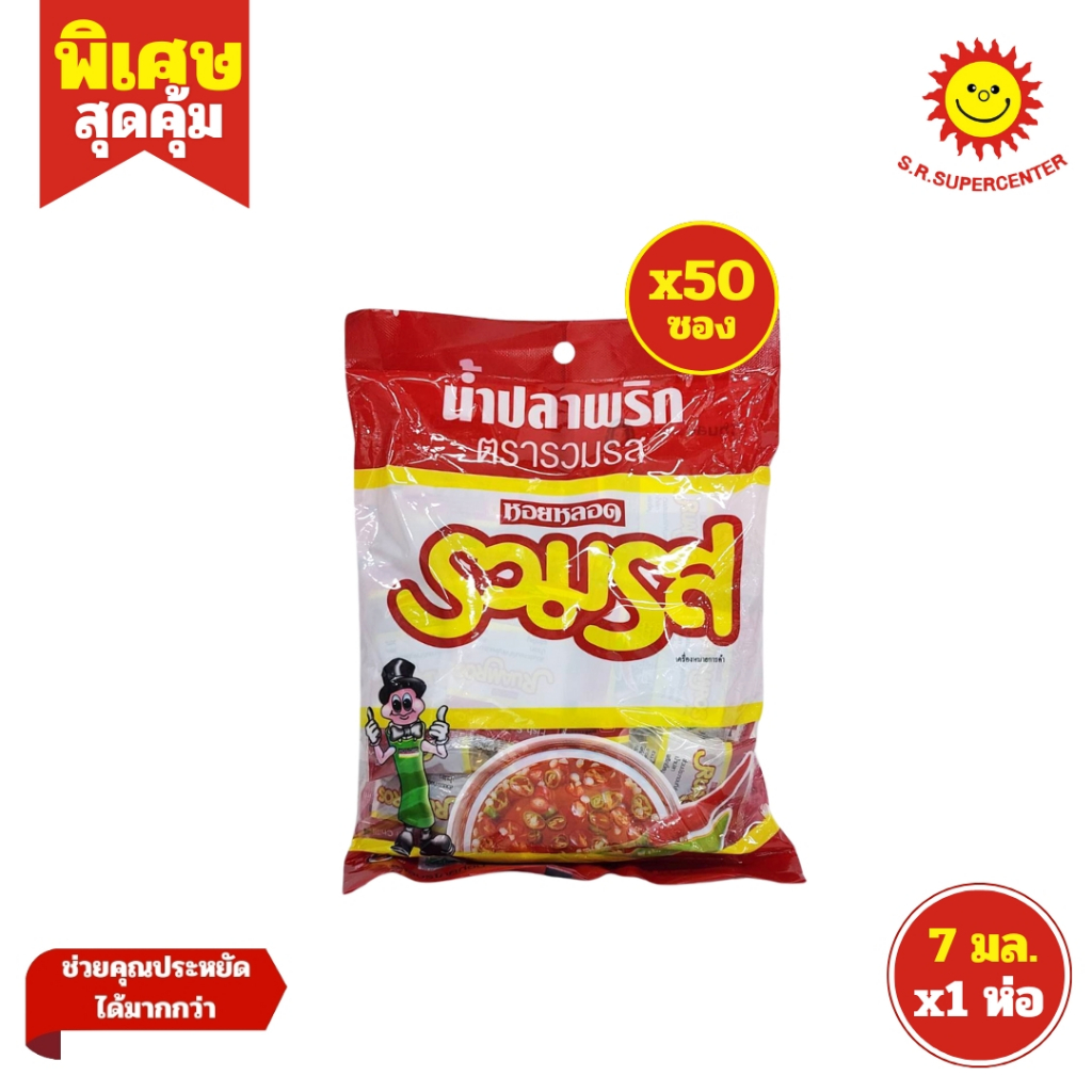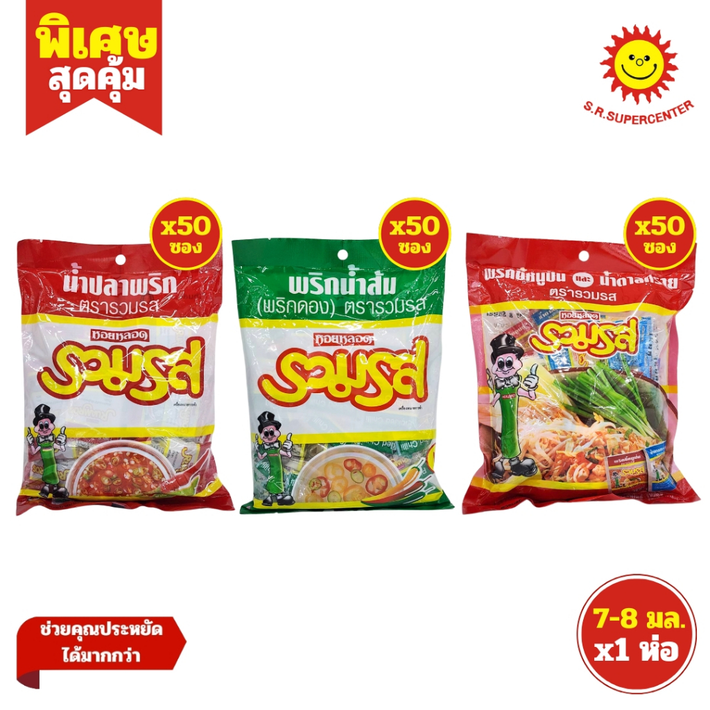 [ 1ห่อ ] Ruamros รวมรส น้ำปลาพริก พริกน้ำส้ม พริกขี้หนูป่นและน้ำตาลทราย ห่อ 50 ซอง ขนาด 7-8 มล. (1ห่อ)