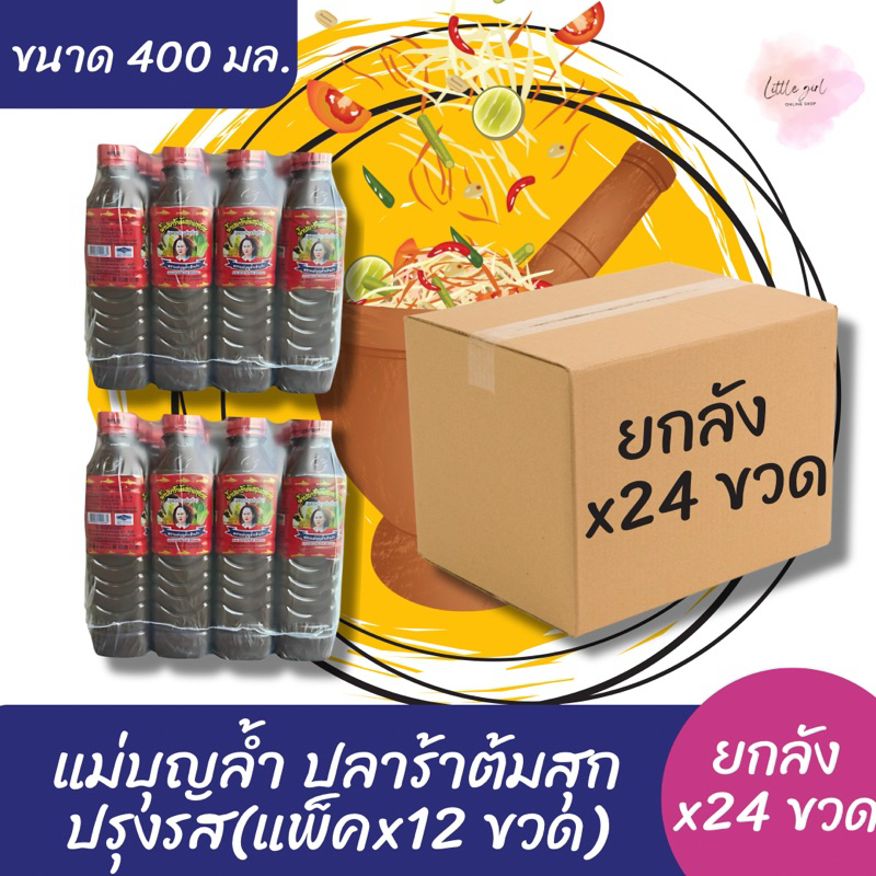 (ยกลัง x24 ขวด) แม่บุญล้ำ น้ำปลาร้าต้มสุก ปรุงรส ฝาแดง 400 มล. ยกลัง 2 แพ็ค (24 ขวด)