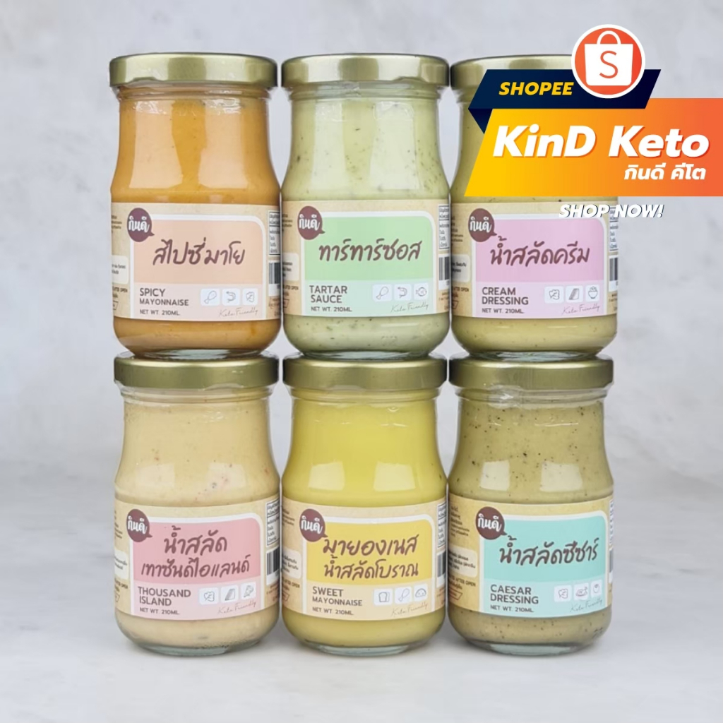 [Keto] น้ำสลัดครีมคีโต มายองเนส สไปซี่มาโย กินดี น้ำสลัดจากน้ำมันมะกอก 100% ไม่มีน้ำตาล KinD Keto กินดีคีโต ใจดีแฟคตอรี่
