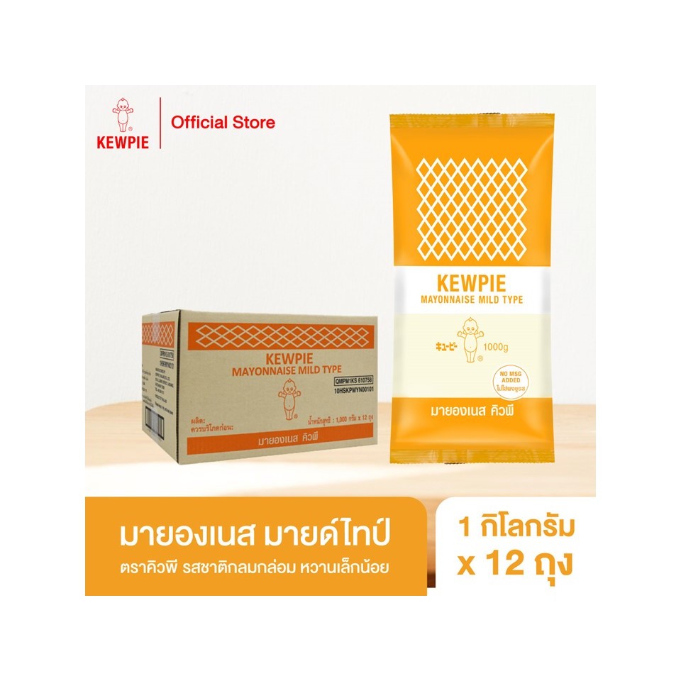 [ยกลัง 12 ถุง] KEWPIE Mayonnaise Mild Type มายองเนส มายด์ไทป์ คิวพี ขนาด 1 kg.