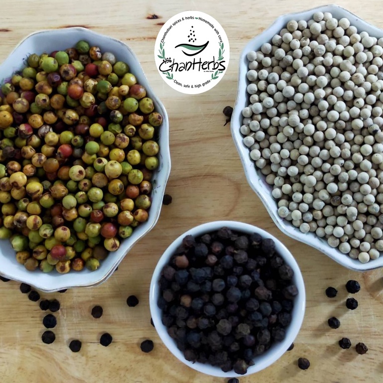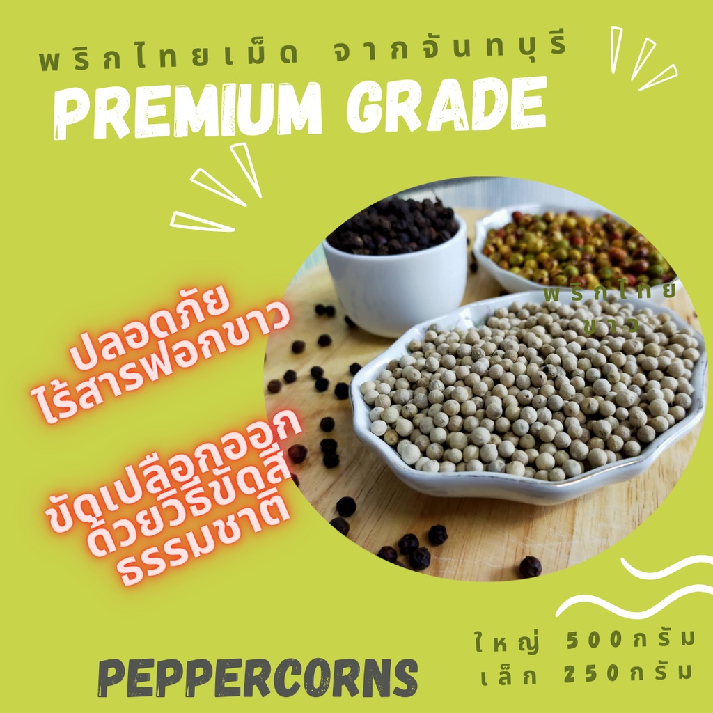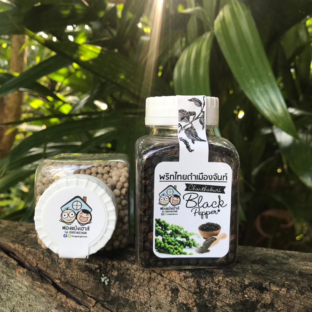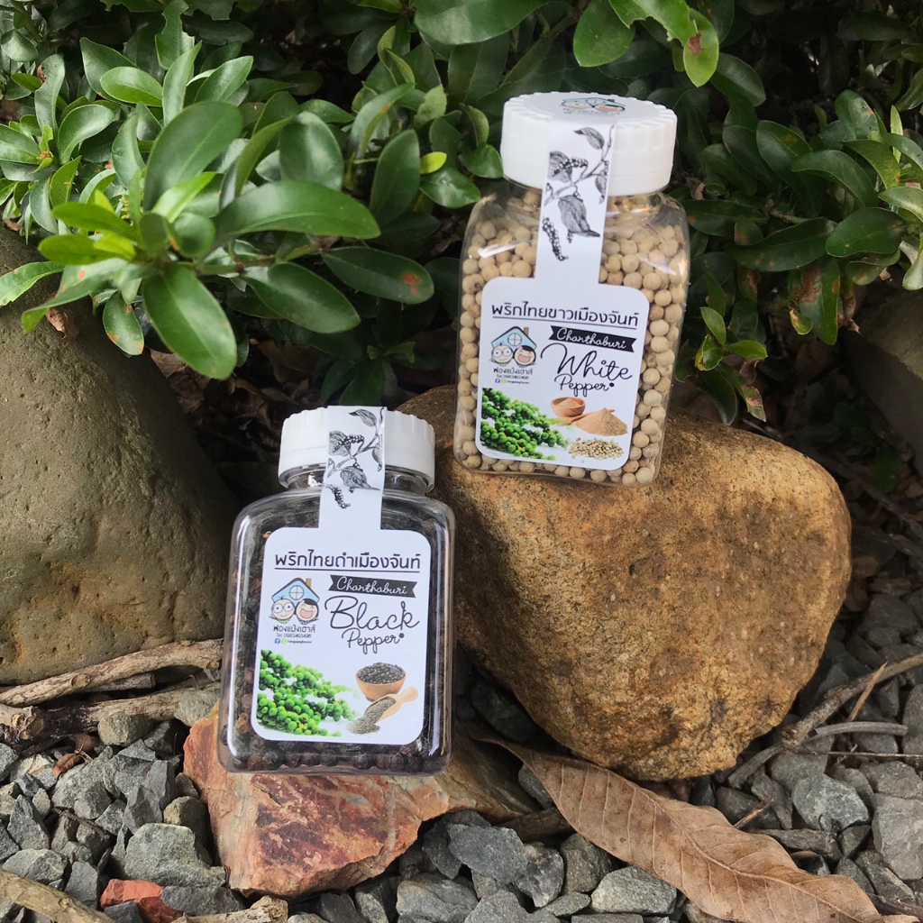 พริกไทยเม็ด จันทบุรี ผลิตด้วยกรรมวิธีทางธรรมชาติ แพคคู่ ขาวและดำ ขวดละ 90 กรัม