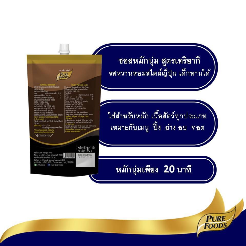 เพียวฟู้ดส์ ซอสหมักนุ่ม สูตร เทอริยากิ ขนาด 180 กรัม การทำอาหารจะไม่ยุ่งยากและใช้เวลานานอีกต่อไป