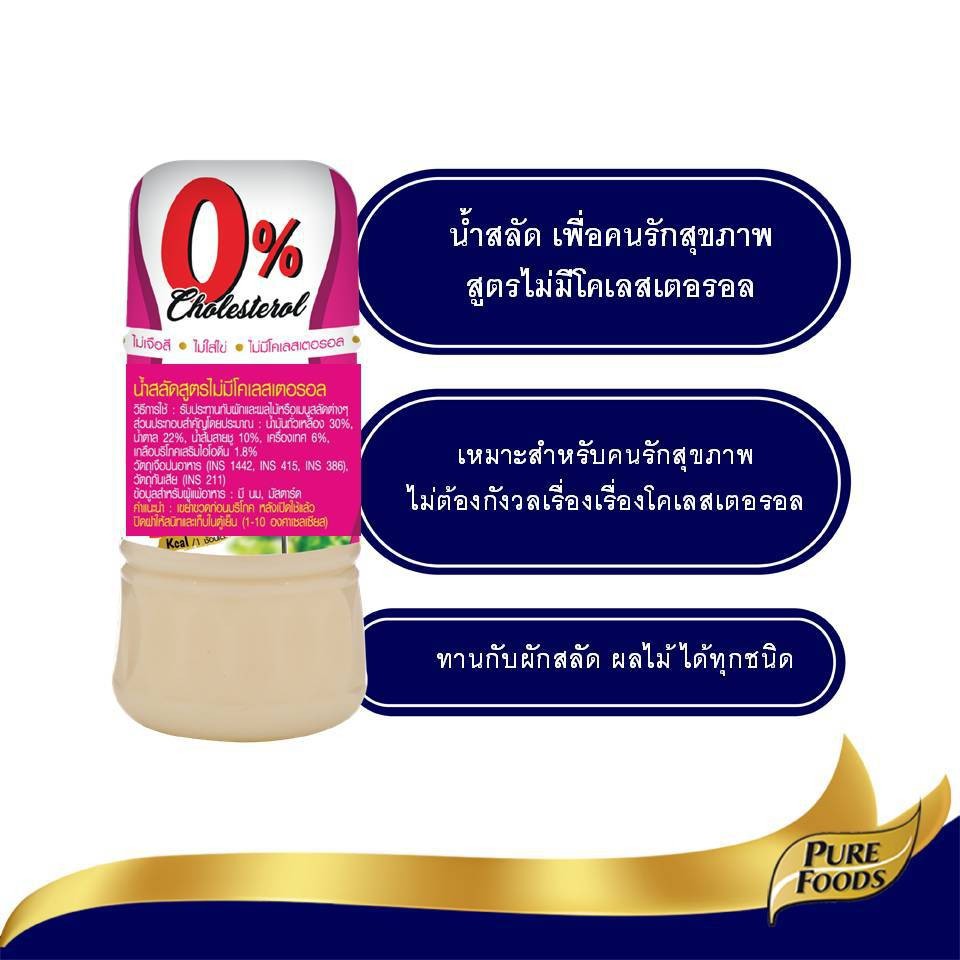เพียวฟู้ดส์ น้ำสลัดไม่มีคลอเรสเตอรอล 150 กรัม ไม่ใส่ไข่ไก่ เหมาะกับสลัดผักทุกชนิด