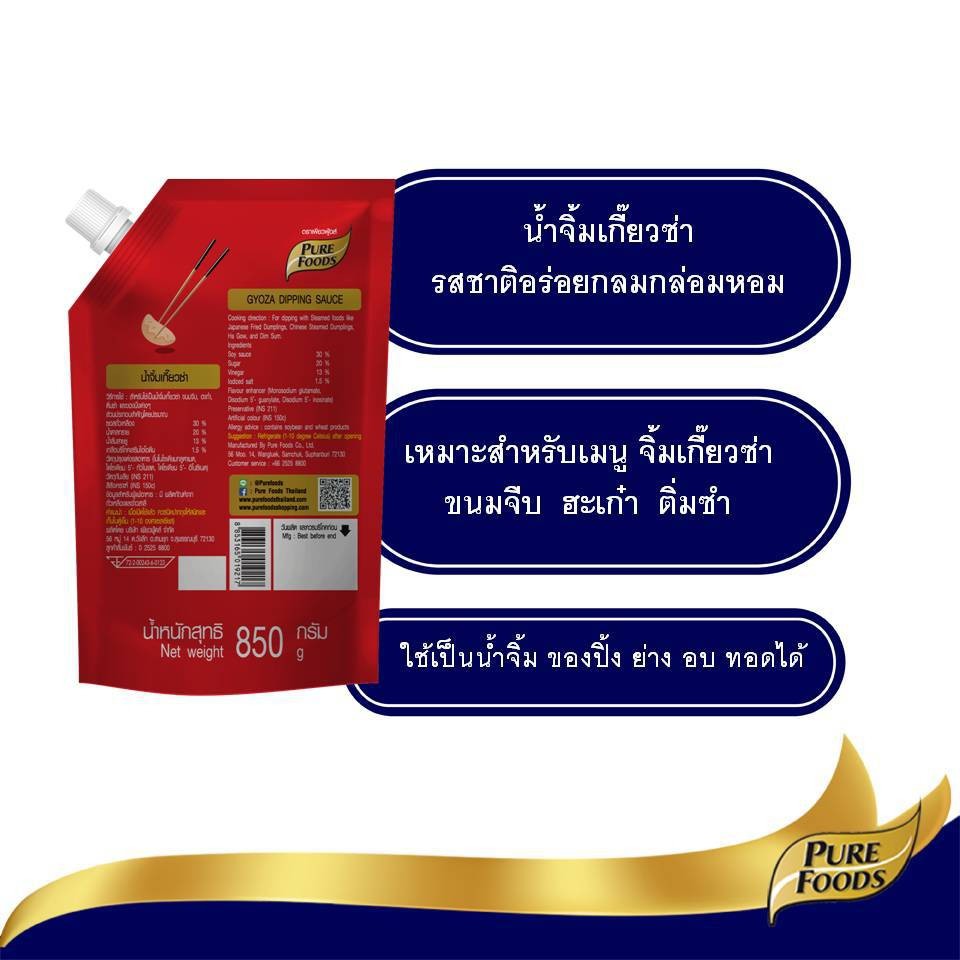 เพียวฟู้ดส์ น้ำจิ้มเกี๊ยวซ่า ขนาด 850g มีฮาลาล สูตรดั้งเดิม น้ำจิ้ม ซอส