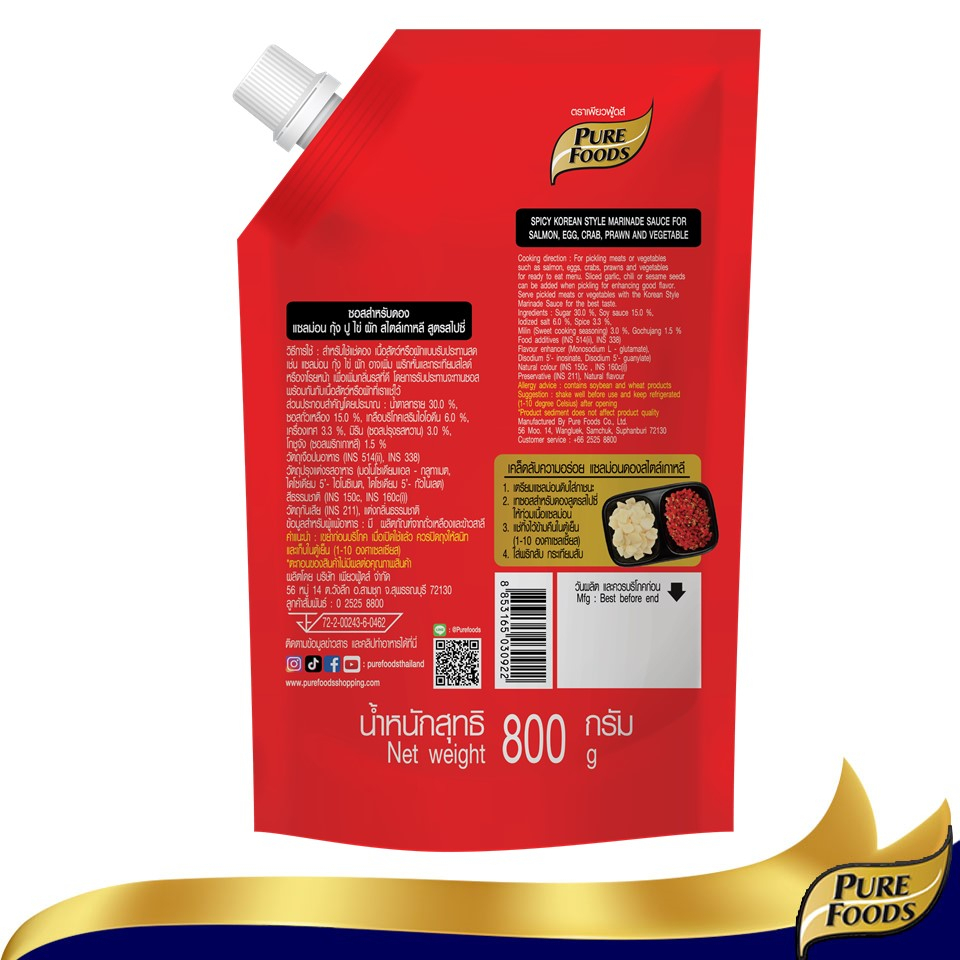 เพียวฟู้ดส์ ซอสดอง สูตรสไปซี่ ขนาด 800 กรัม ซอสดองเกาหลี ดองกุ้ง ดองปู ดองแซลมอล ซอสดองซีอิ๊ว