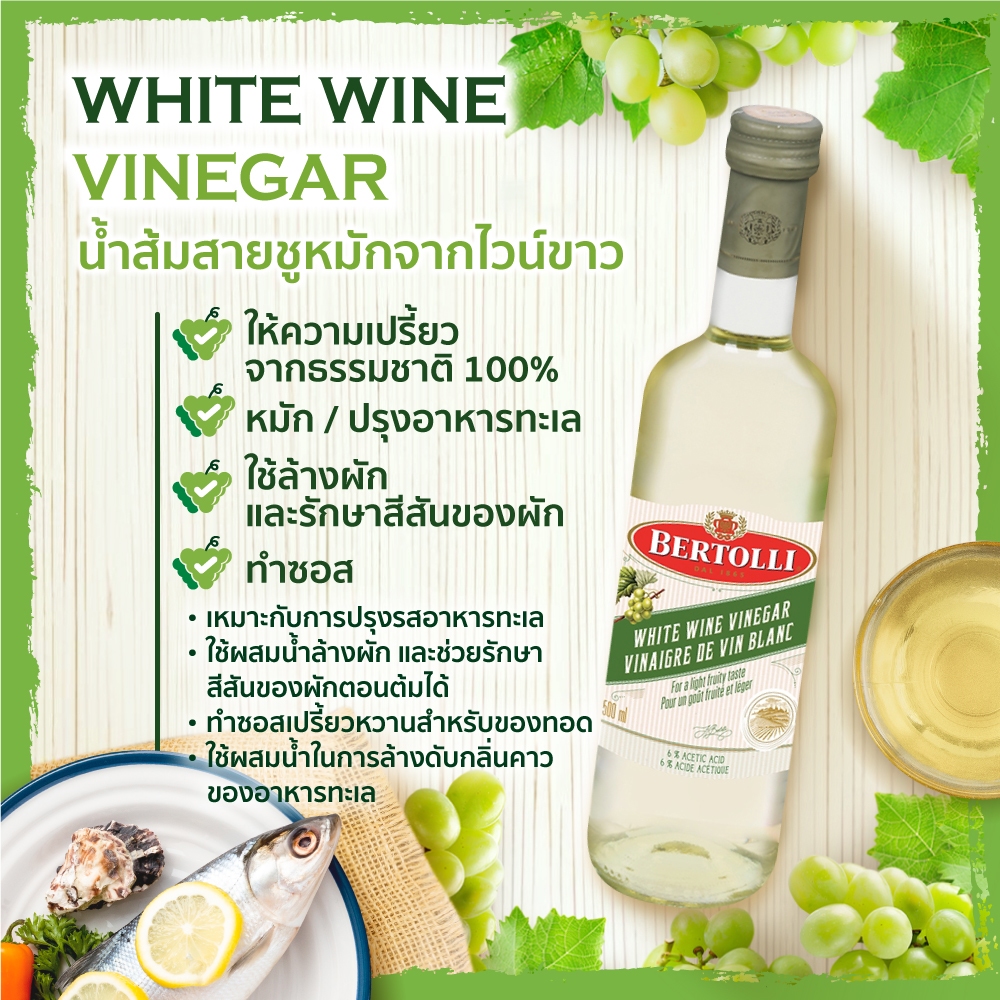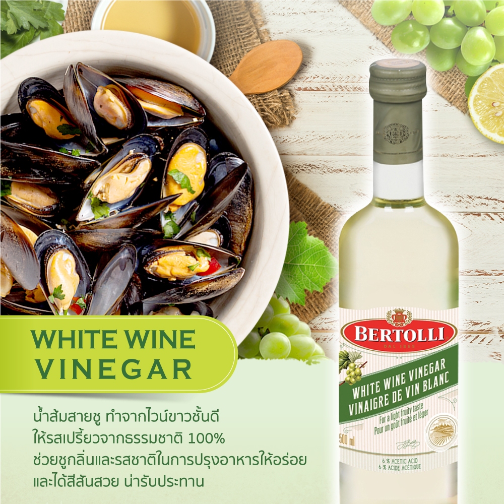 เบอร์ทอลลี่ น้ำส้มสายชูหมักจากไวน์ขาว 500 มล. │ Bertolli White Wine Vinegar 500 mL