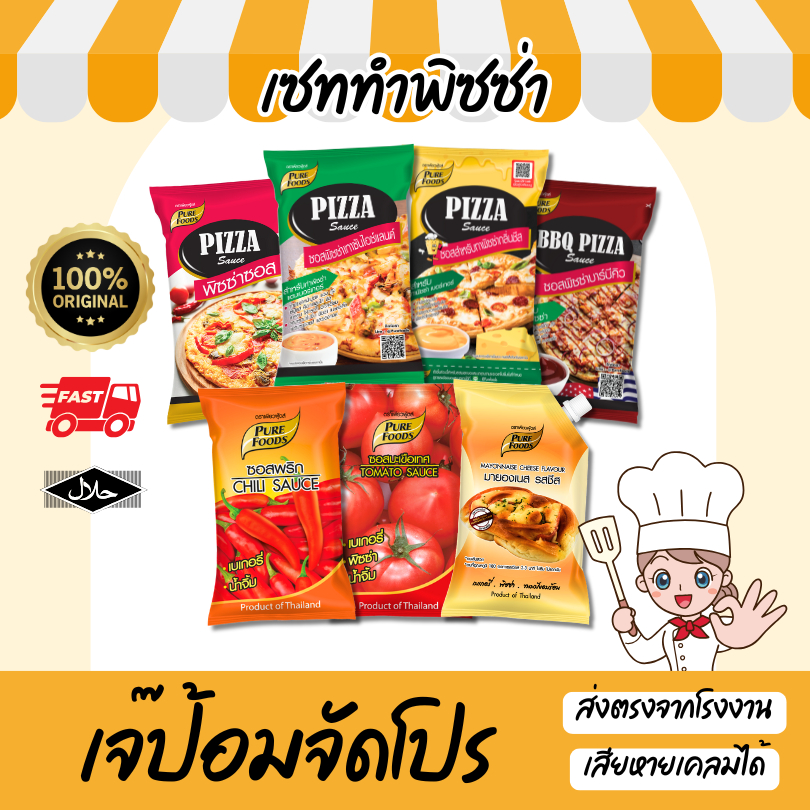 เพียวฟู้ดส์ ซอสพิซซ่า ซอสเทาซัน ซอสสปาเก็ตตี้ มีฮาลาล พาสต้า มายองเนส ชีส พิซซ่า ซอสมะเขือเทศเข้มข้น