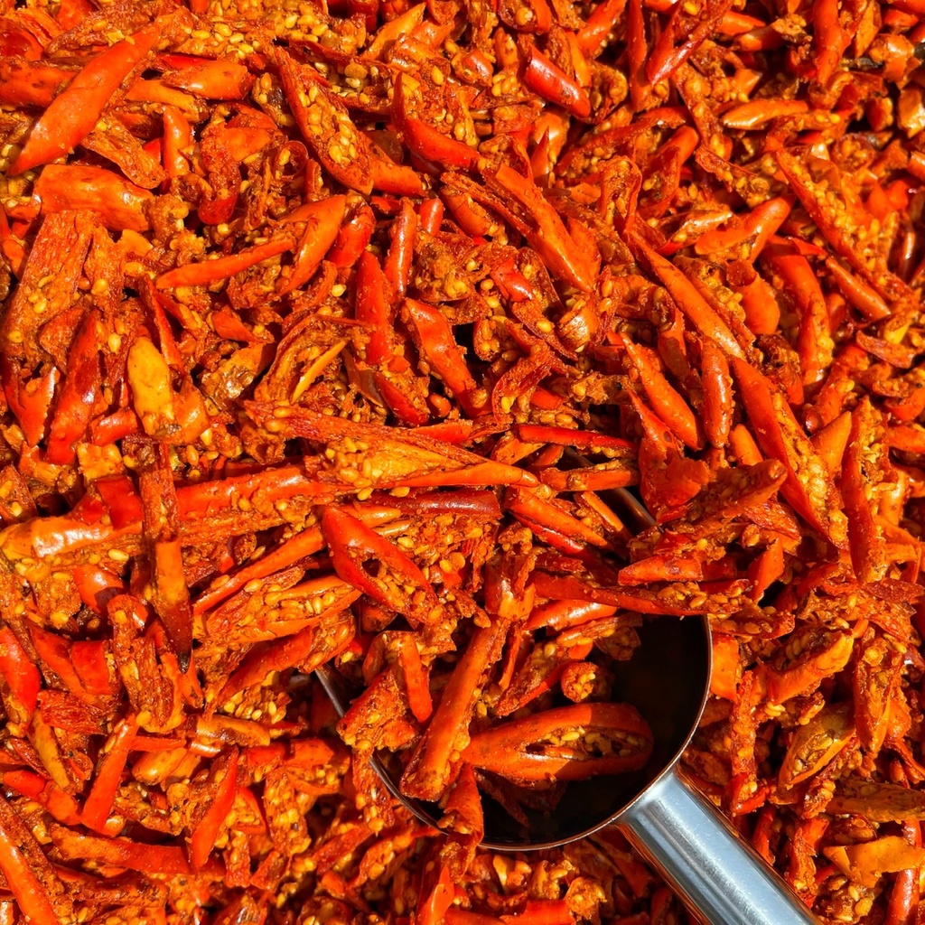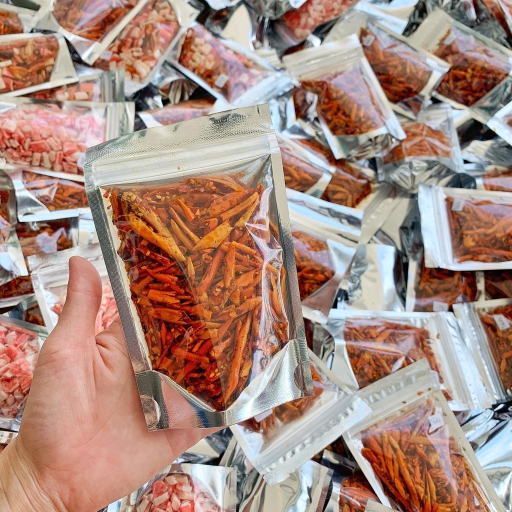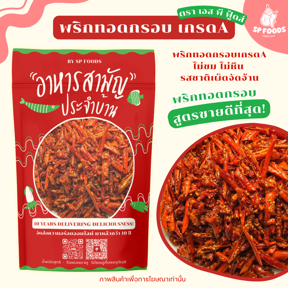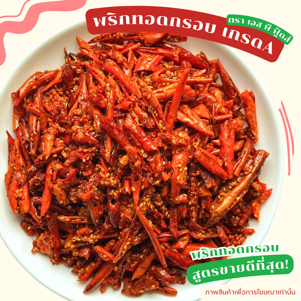 แพ็ค50g-200g พริกทอดกรอบ เกรด A ไม่ขมไม่หืน มีหลายรสชาติ ตรา เอส พี ฟู้ดส์
