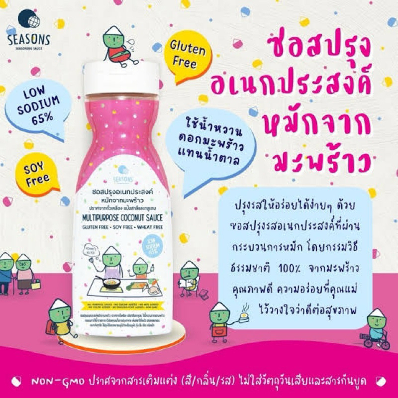 แพ็คเกจใหม่รูปที่2นะคะ Seasons multipurpose coconut sauce แท้ ซอสปรุงรส อเนกประสงค์จากมะพร้าว กลูเต้นฟรี