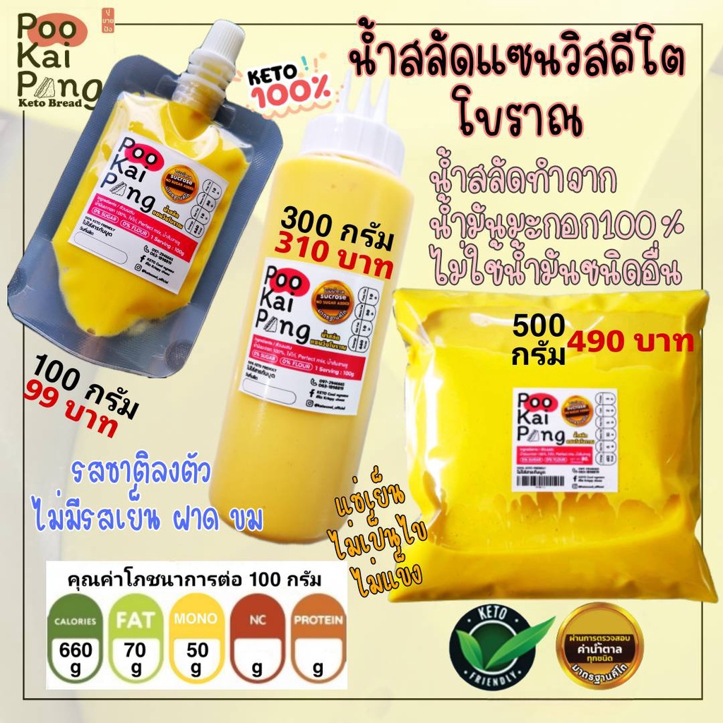 KETO ของแท้ น้ำสลัดคีโตถุง 100 กรัม ใช้น้ำมันมะกอก100% ไม่ใช้น้ำมันชนิดอื่น ตรวจสอบค่าน้ำตาลแล้ว