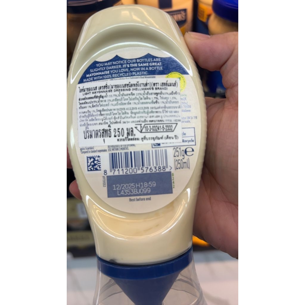 Hellmann’S Squeeze Mayo Light 250Ml เฮลล์แมนส์ มายองเนส ไลท์ 250 กรัม