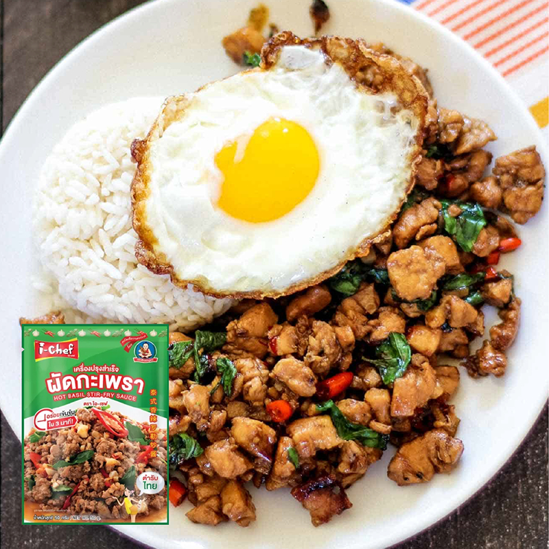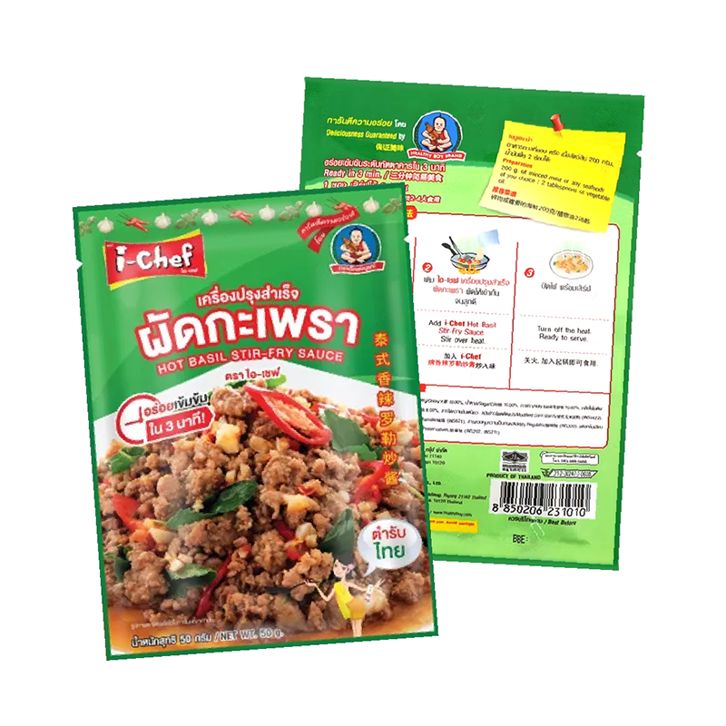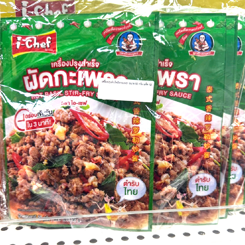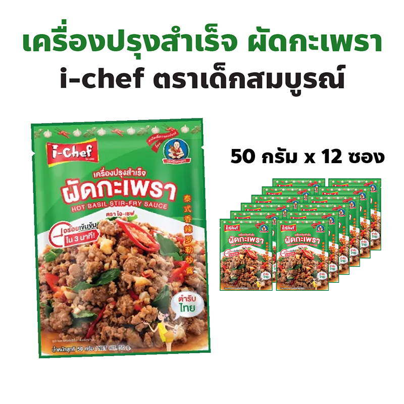 i chef ตราไอ-เชฟ (เด็กสมบูรณ์) เครื่องปรุงสำเร็จผัดกะเพรา ปริมาณ 50 กรัมต่อซอง แพ็คละ 12 ซอง