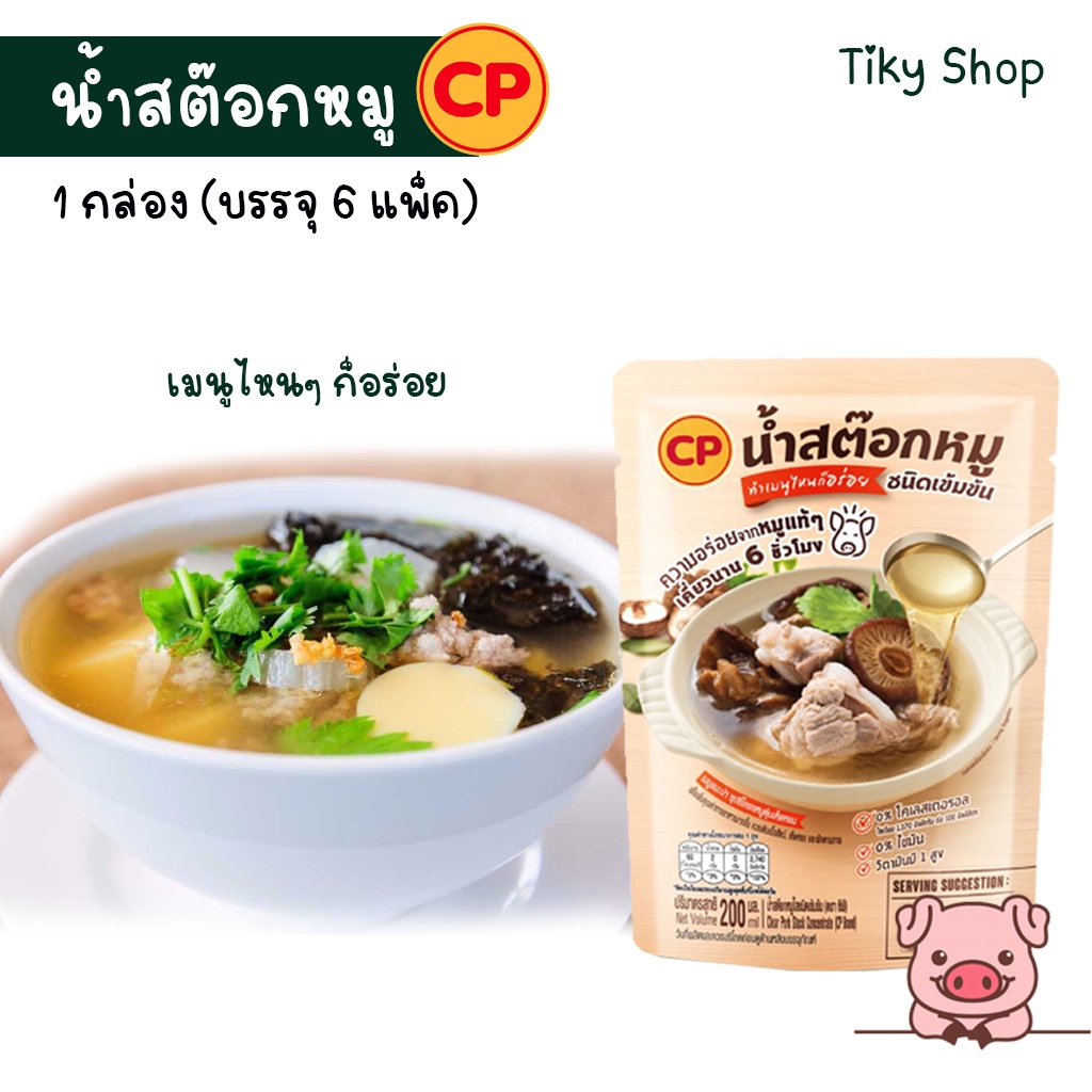 CP น้ำสต๊อคหมู ชนิดเข้มข้น ไม่มีโคเลสเตอรอล ไม่มีไขมัน มีวิตามินบี 1สูง ขนาดบรรจุ 1 กล่อง (6แพ็ค)