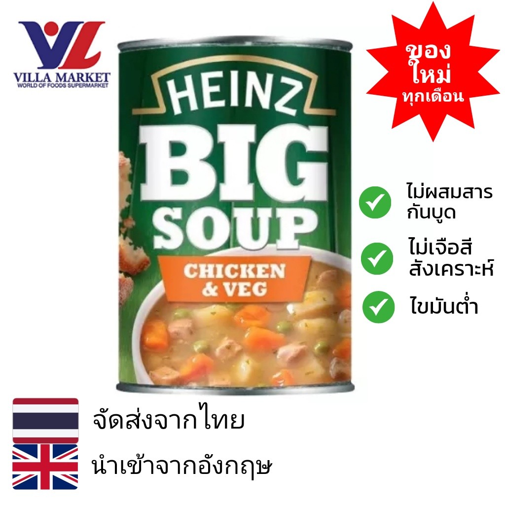 Heinz Big Soup Chicken & Vegetables 400G ไฮนซ์ ซุป พร้อมทาน รส ไก่ & ผัก น้ำสต๊อก ซุปกระป๋อง