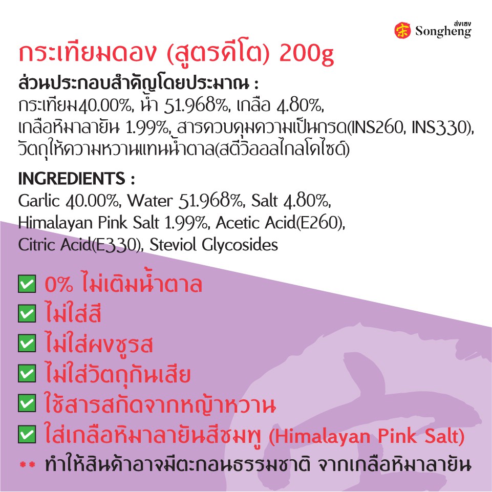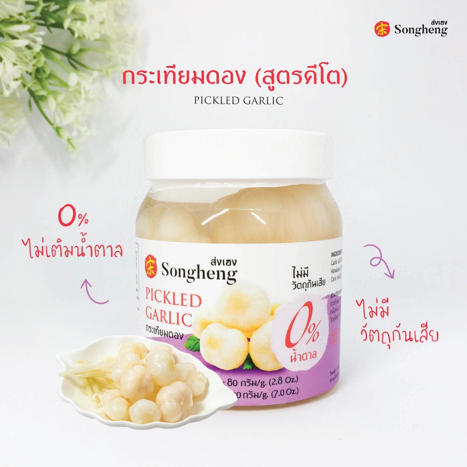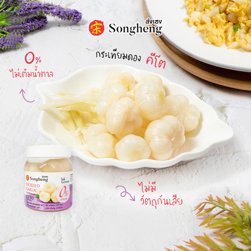 กระเทียมดอง คีโต ไม่ใส่วัตถุกันเสีย ไม่มีน้ำตาล เกรดส่งออก (1ขวดx200กรัม) keto ส่งเฮง Songheng