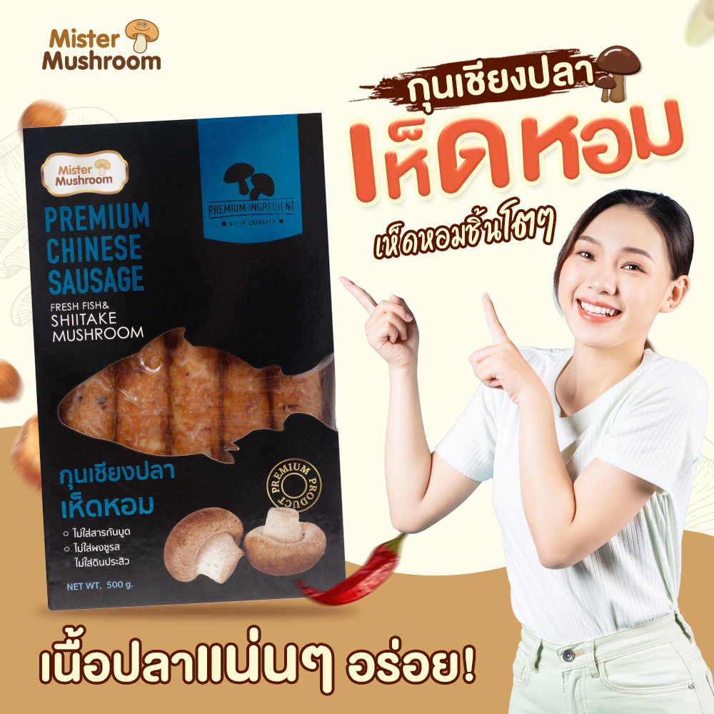 (Mister Mushroom) กุนเชียงปลาเห็ดหอม ตรามิสเตอร์มัชรูม ขนาด 500 กรัม (วังน้ำเขียวฟาร์ม)