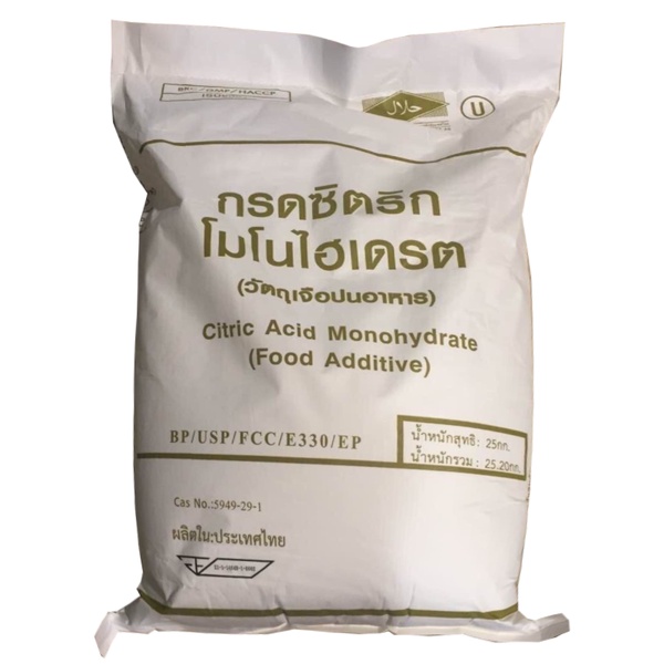 กรดซิตริกหรือกรดมะนาว (CITRIC ACID MONOHYDRATE) 25 กิโลกรัม / กระสอบ