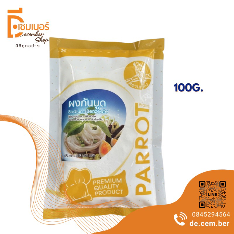 100 กรัม โซเดียมเบนโซเอต สารกันเสีย (จีน) ผงกันบูด สารกันบูด ผงกันเสีย ตรา นกแก้ว