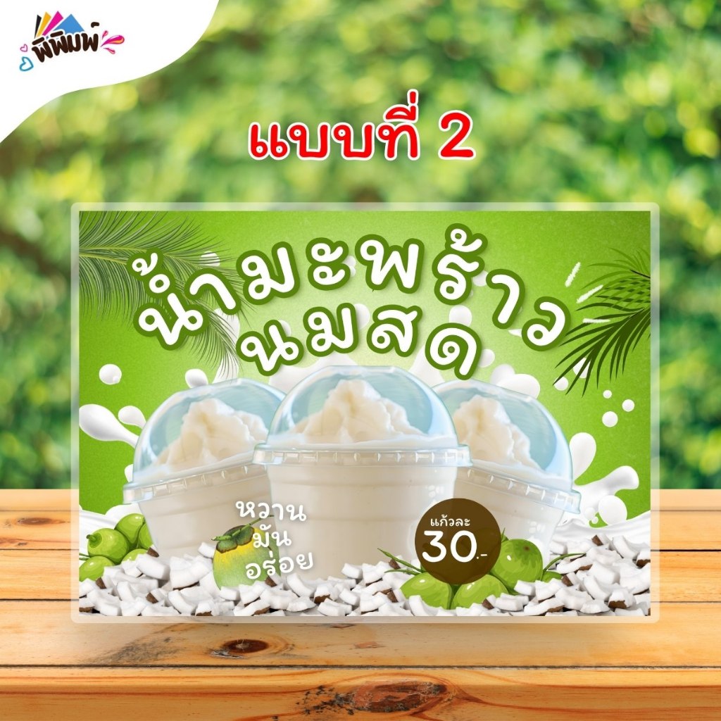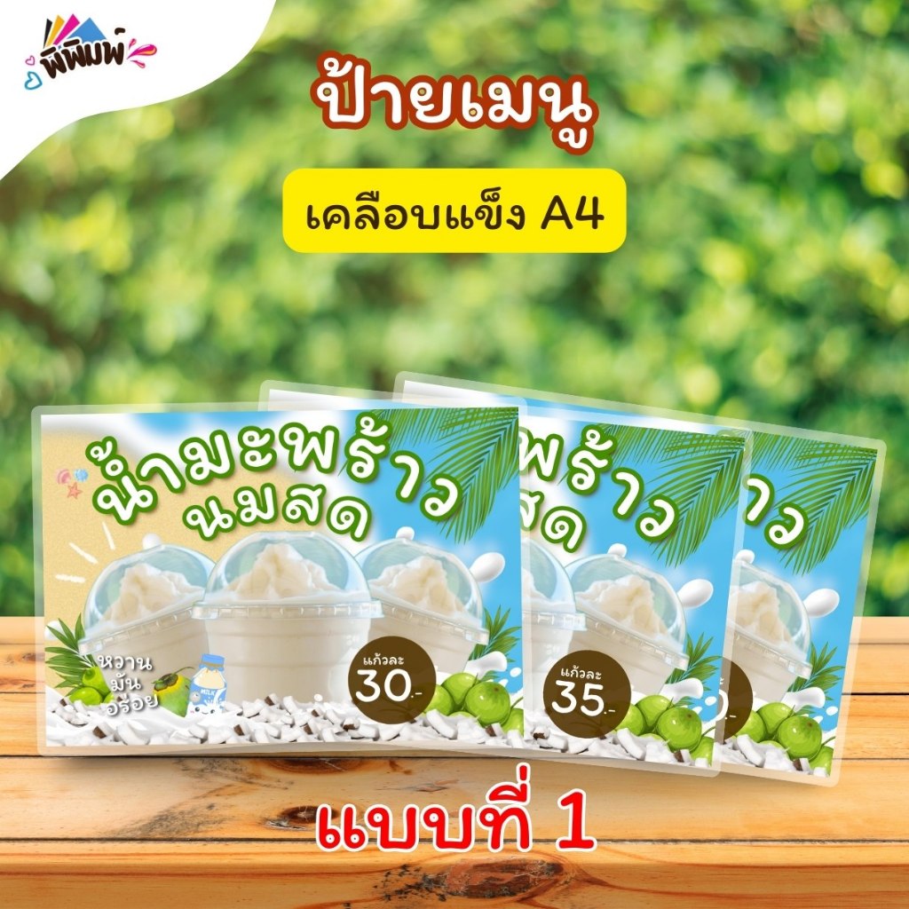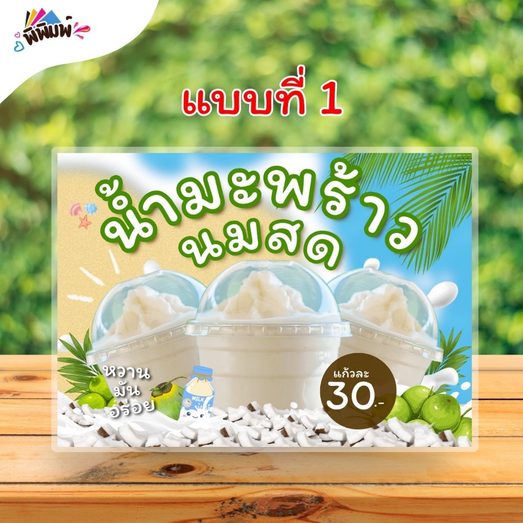 ป้ายเมนู_แนวนอน น้ำมะพร้าวนมสด(แก้ว) A4 เคลือบแข็ง (A045)