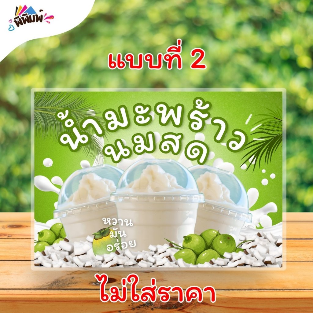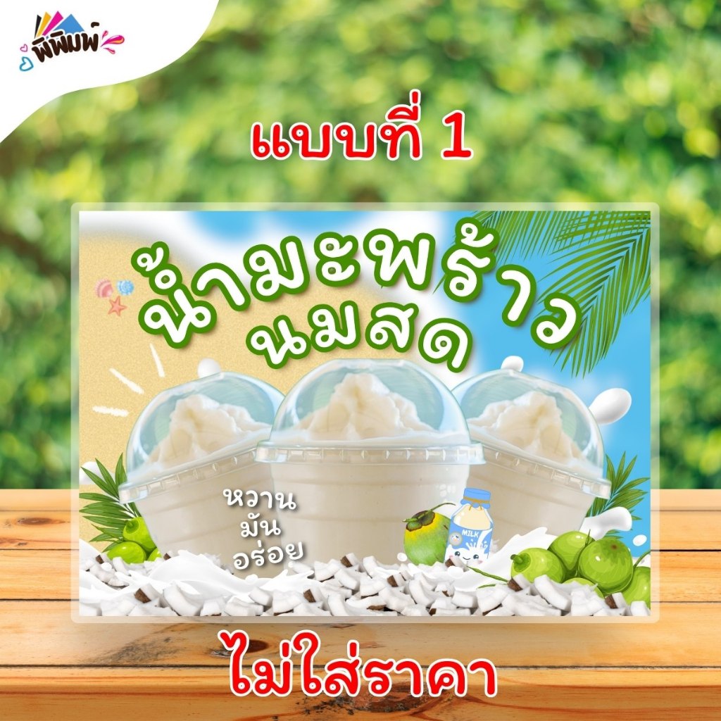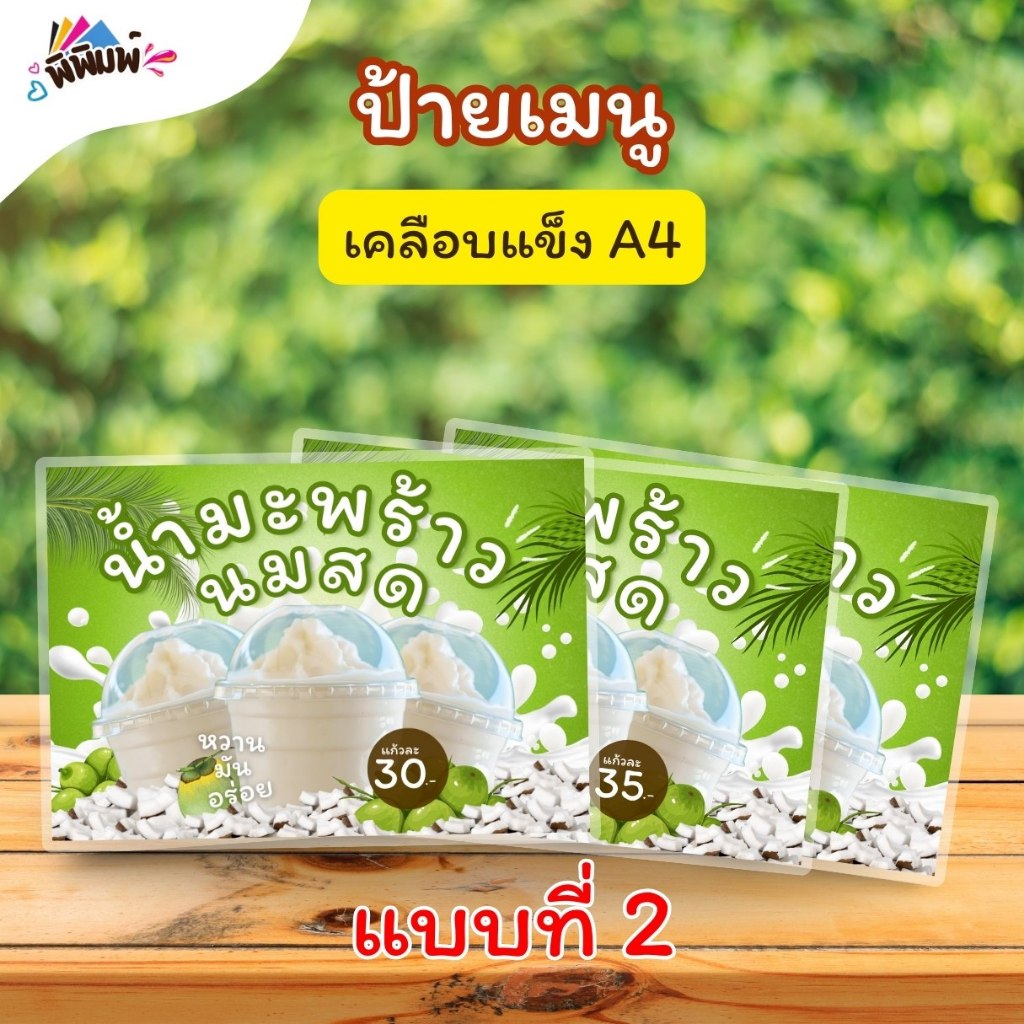 ป้ายเมนู_แนวนอน น้ำมะพร้าวนมสด(แก้ว) A4 เคลือบแข็ง (A045)
