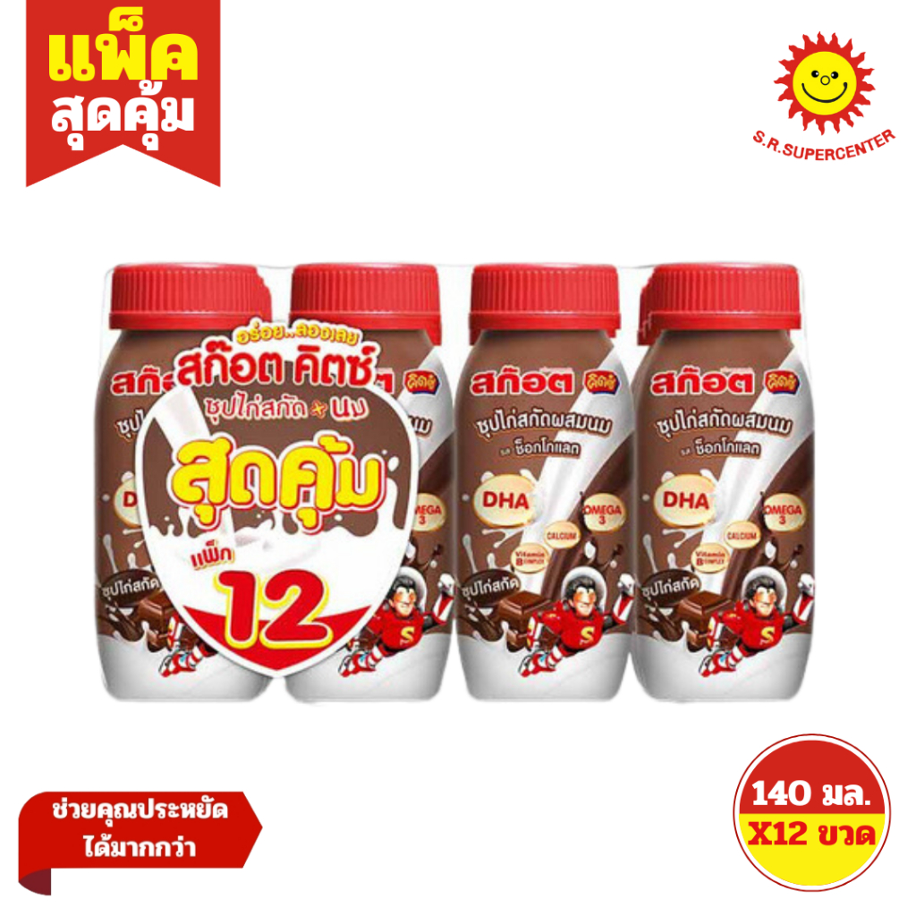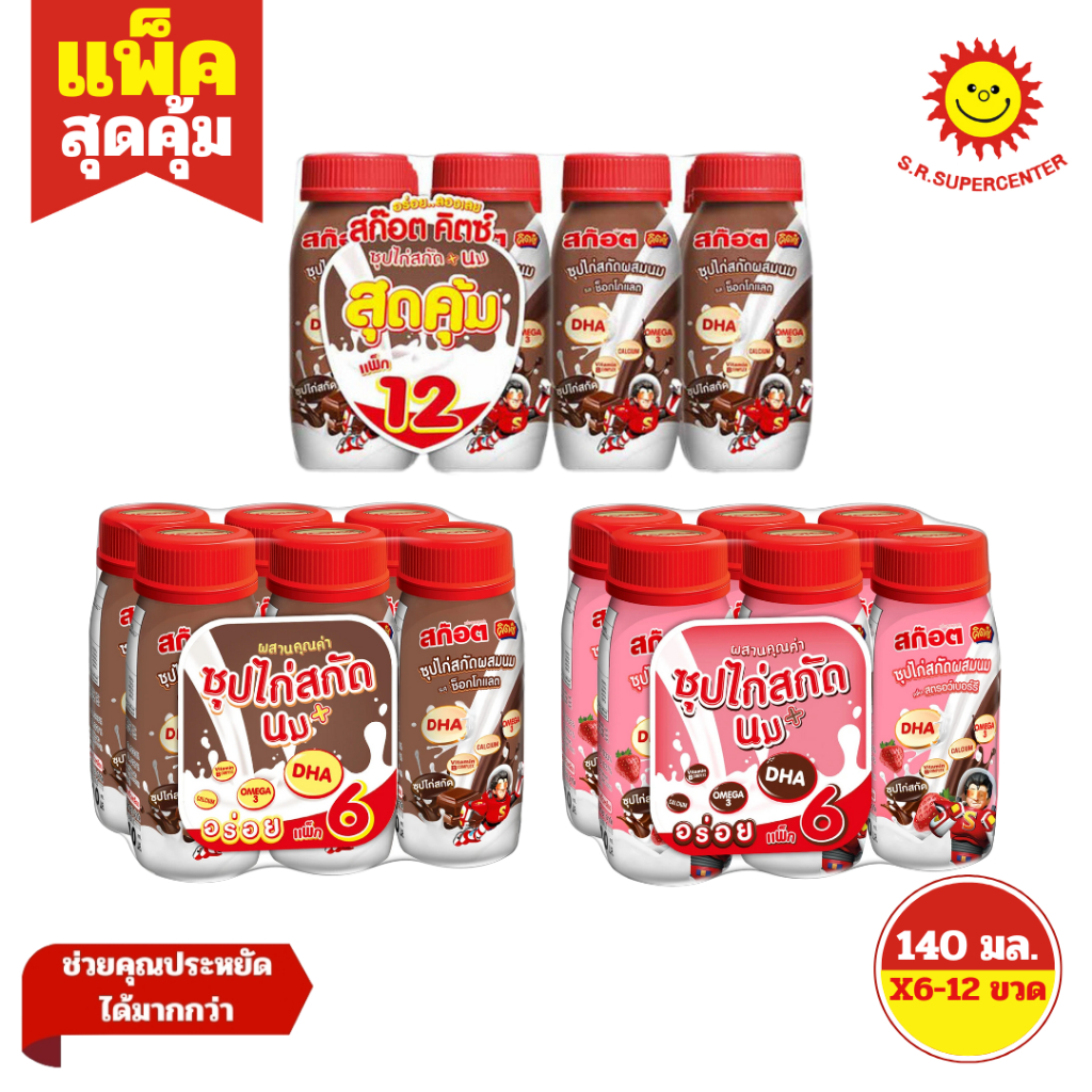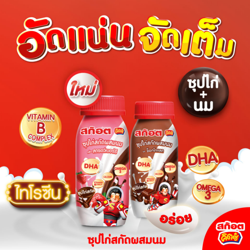 Scotch สก๊อต ซุปไก่สกัดผสมนม ช็อกโกแลต สตรอว์เบอร์รี่ ขนาด 140 มล.