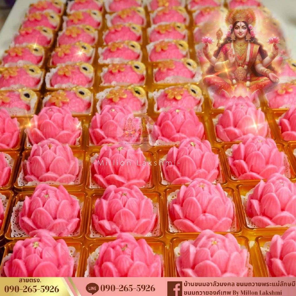(สินค้าพร้อมจัดส่งภายใน 2 วัน) ขนมอาลัวดอกบัวชมพูเงินล้านถวาย ขอพร พระแม่ลักษมี