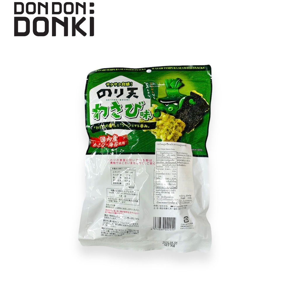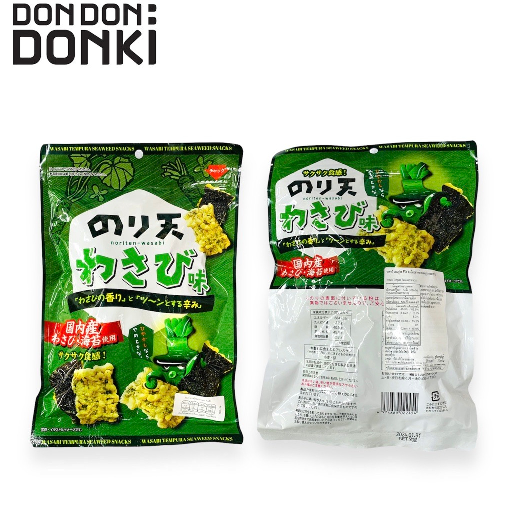 วาซาบิ เทมปูระ ซีวีด สาเเน็ค (สาหร่ายเทมปูระ รสวาซาบิ ซองเขียวเข้ม) ปริมาณสุทธิ 70 กรัม
