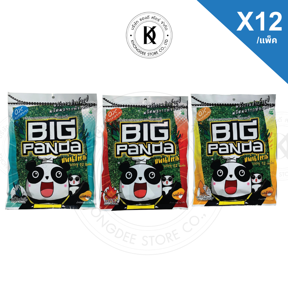 สาหร่าย บิ๊กแพนด้า แผ่นใหญ่ บรรจุ 12 แผ่น มี 3 รสชาติให้เลือก 72 กรัม บรรจุ 12 ซอง