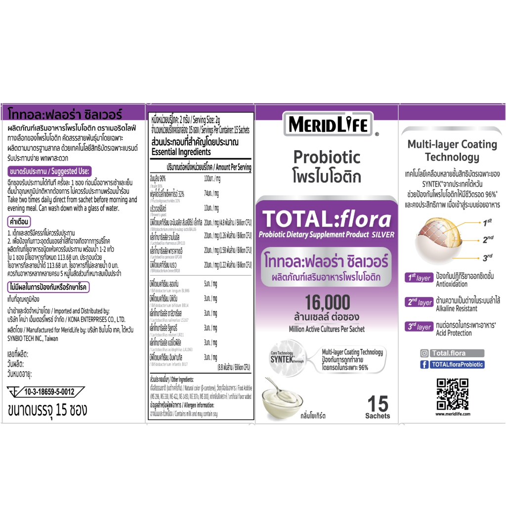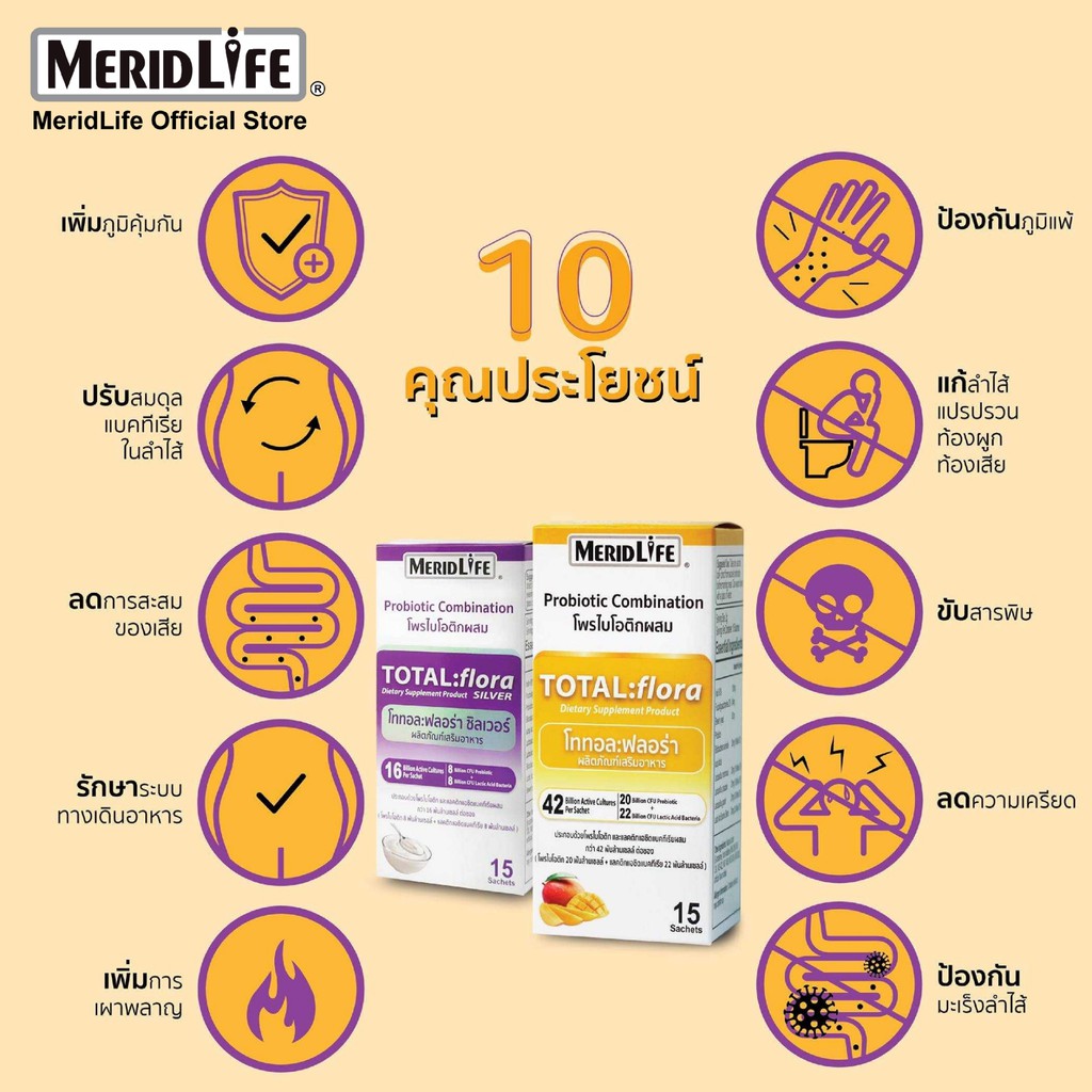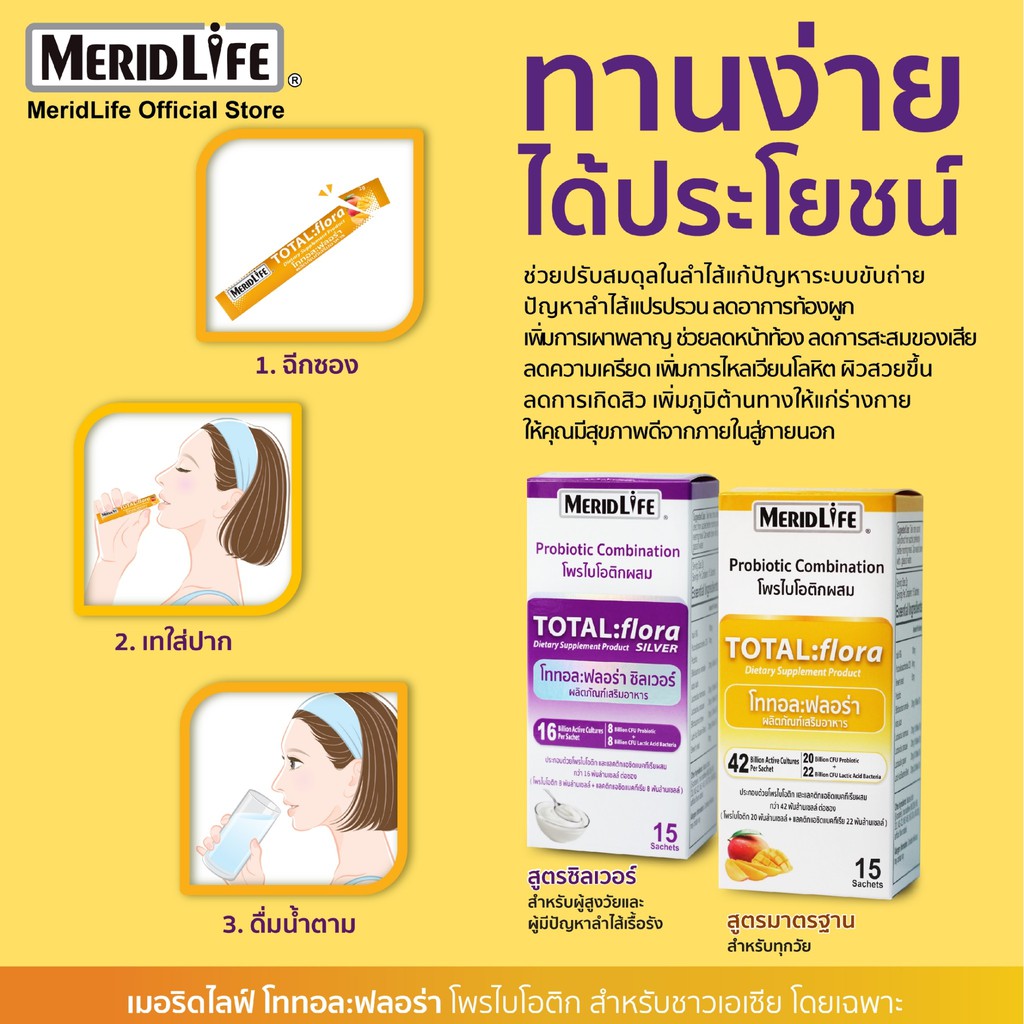“MeridLife” โททอล:ฟลอร่า ซิลเวอร์ โพรไบโอติก Total:flora Probiotic ปรับสมดุลขับถ่าย