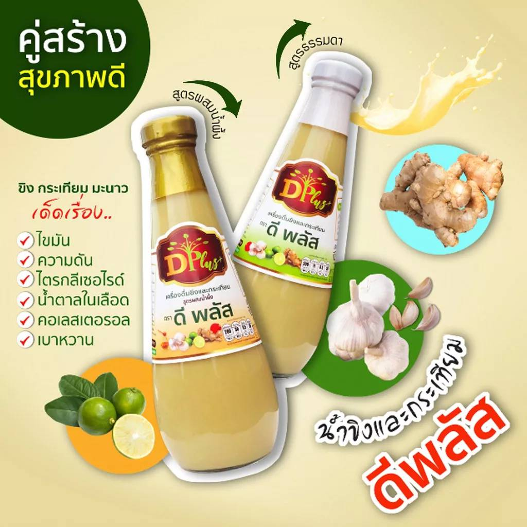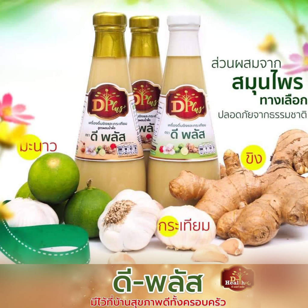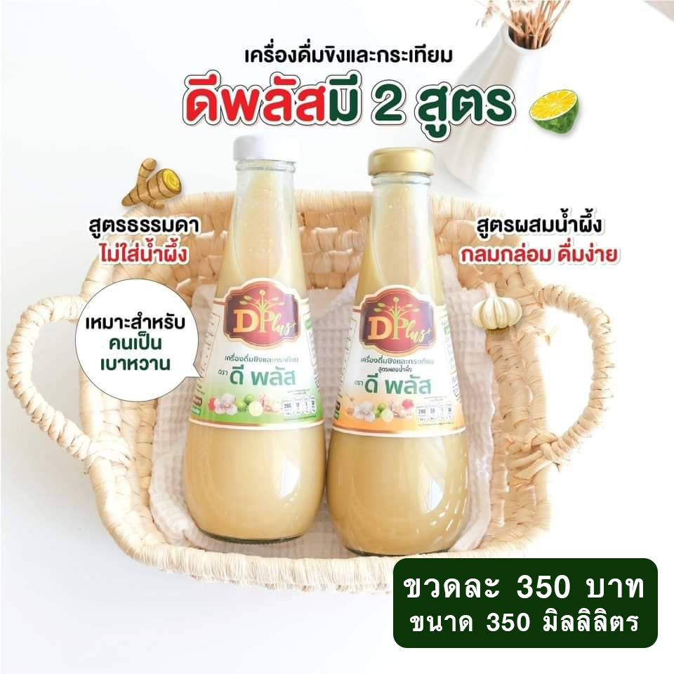 ( 3ขวดคุ้มกว่า ) น้ำกระเทียมขิง ตราดีพลัส (D Plus) น้ำกระเทียมขิงสูตรเข้มข้น /ขนาดบรรจุ 350ml.