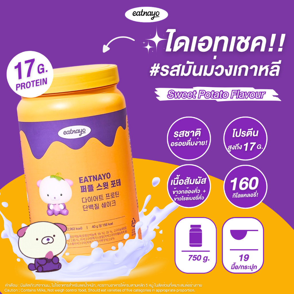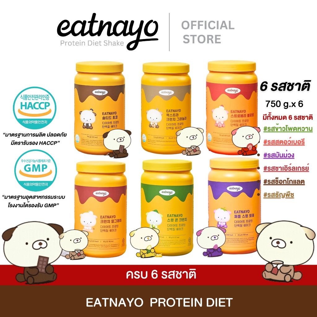 ( เปลี่ยนแพ็กเกจใหม่ ลดล้างสต็อก!!) ✅พร้อมส่ง โปรตีนเกาหลี eatnayo อีทนาโยโปรตีน ไดเอทเชค กับ 6รสชาติ ขนาด 750g