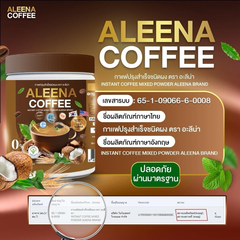 ‼️ โปรโมชั่น ‼️กาแฟ แถม โกโก้อะลีน่า ALEENA ช่วยบำรุงสายตา แก้อาการปวดเมื่อย เก๊าท์ รูมาตอยด์ กาแฟบำรุงกระดูก