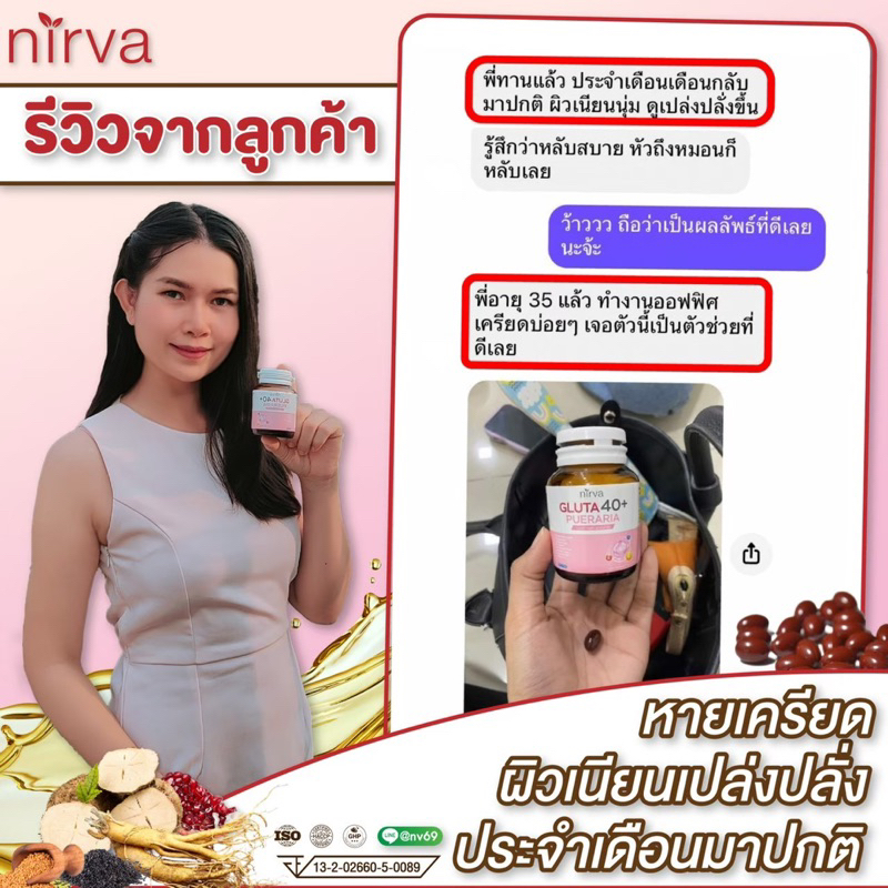 Nirva Gluta40+ วิตามินคืนความสาว 2 กระปุก บำรุงผิว ดูแลวัยทองปรับสมดุลฮอร์โมนบำรุงจากภายใน