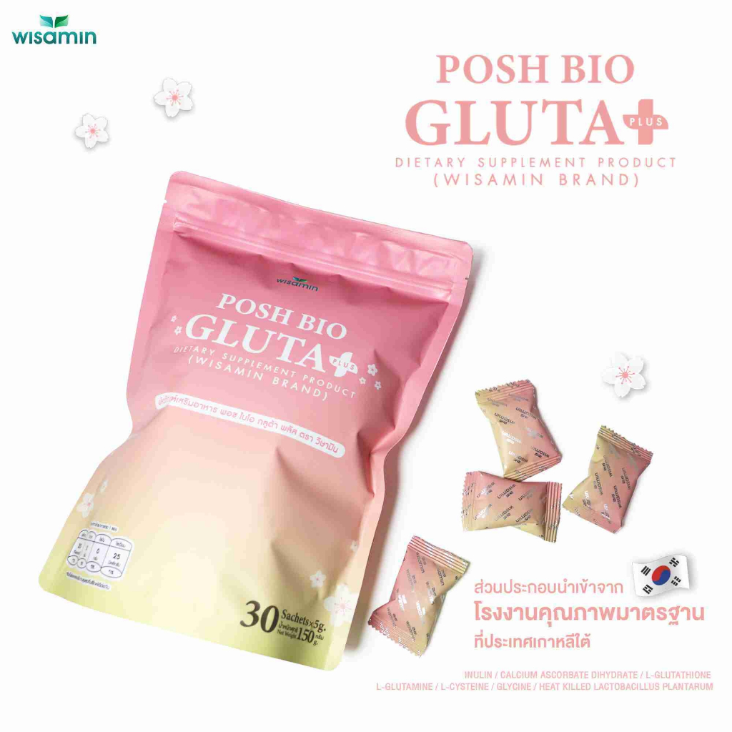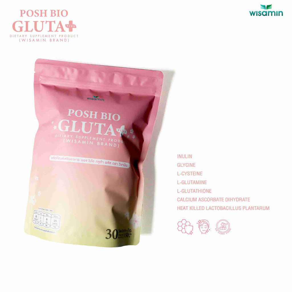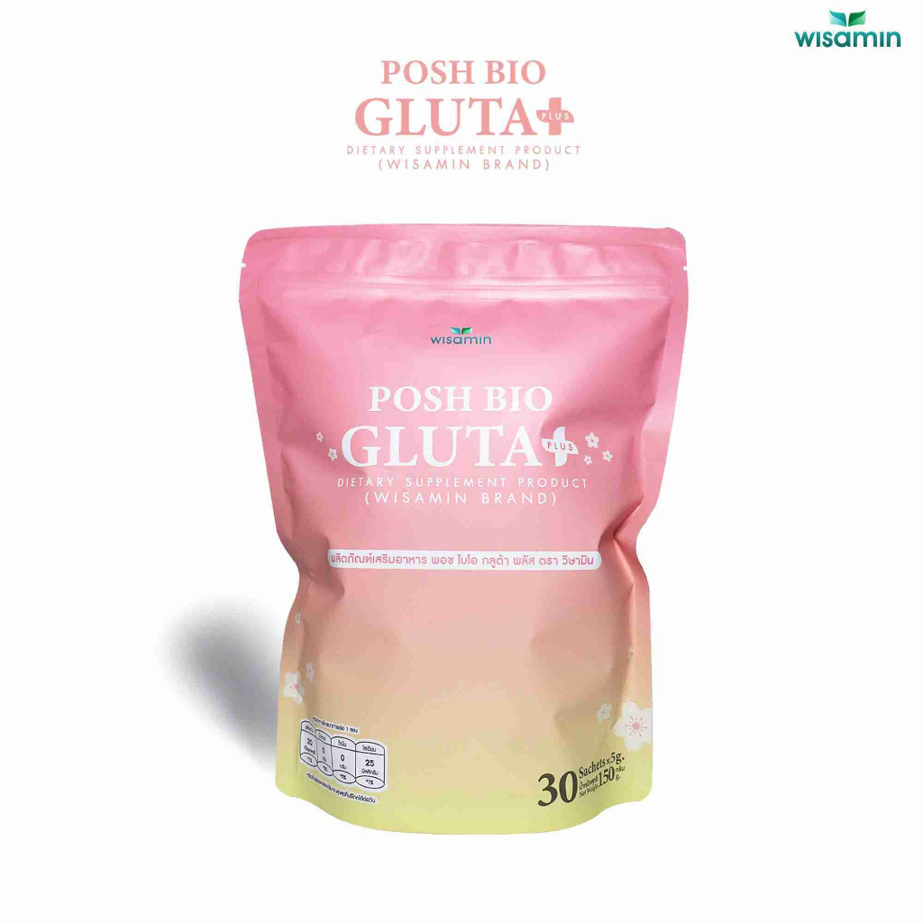 POSH BIO GLUTA PLUS ผลิตภัณฑ์เสริมอาหาร พอช ไบโอ กลูต้า พลัส (ตราวิษามิน) จำนวน 1 ถุง บรรจุ 30 ซอง