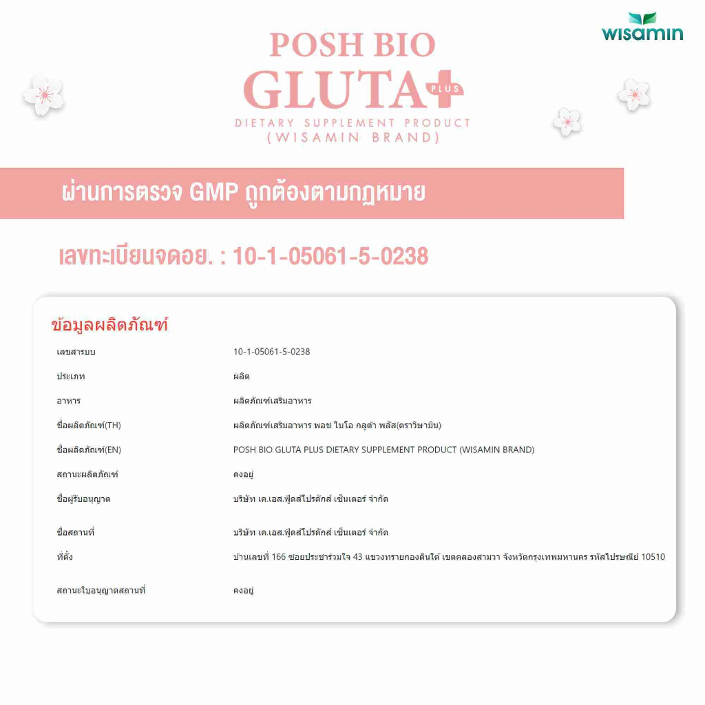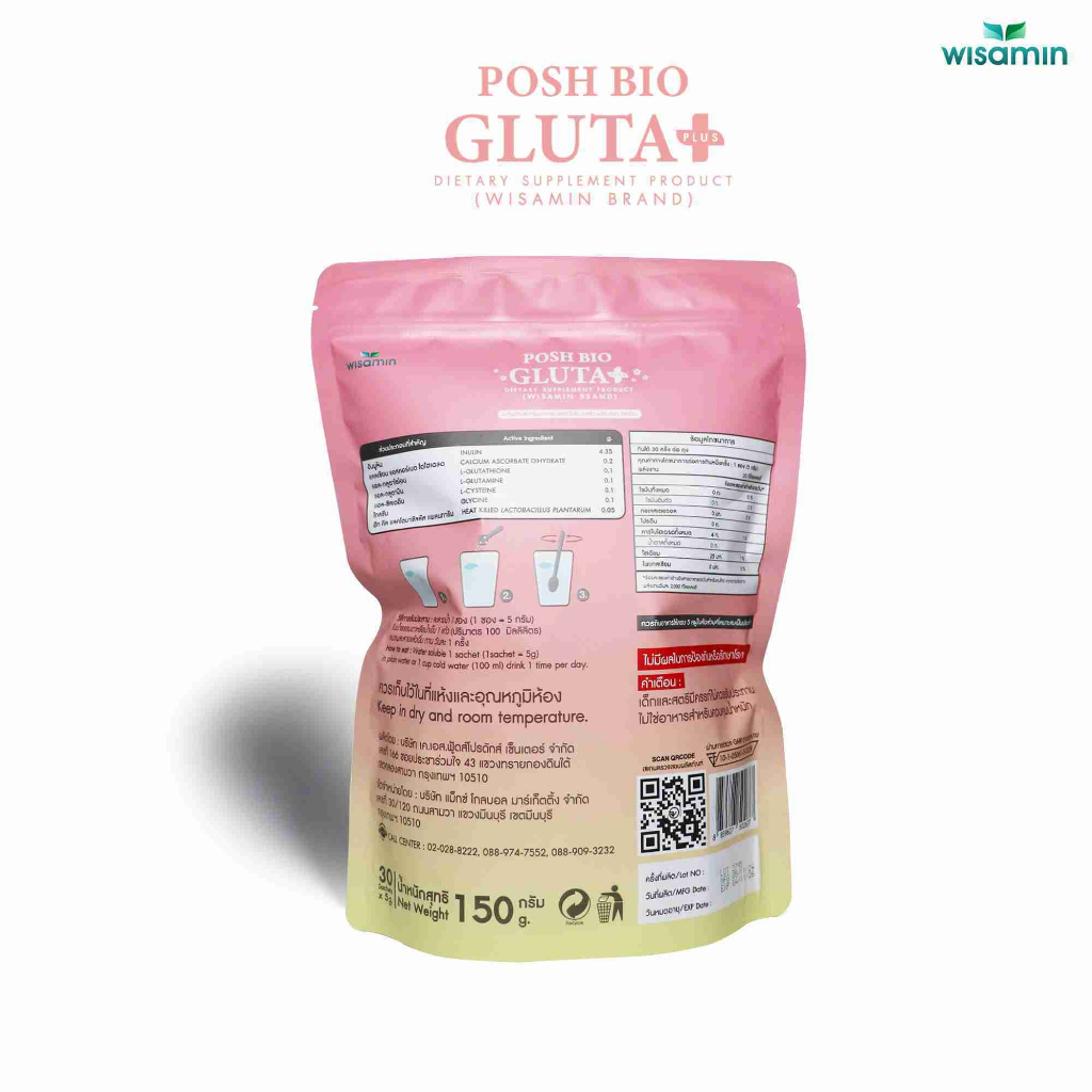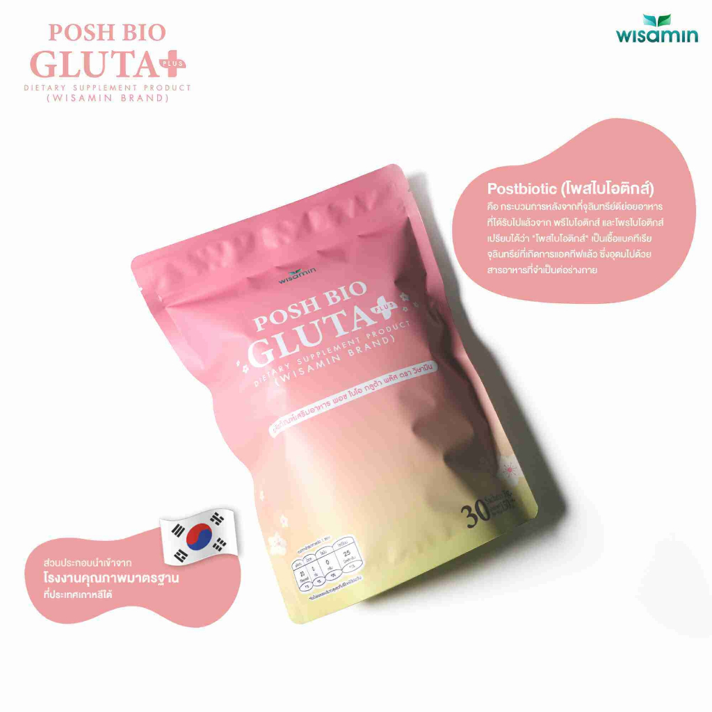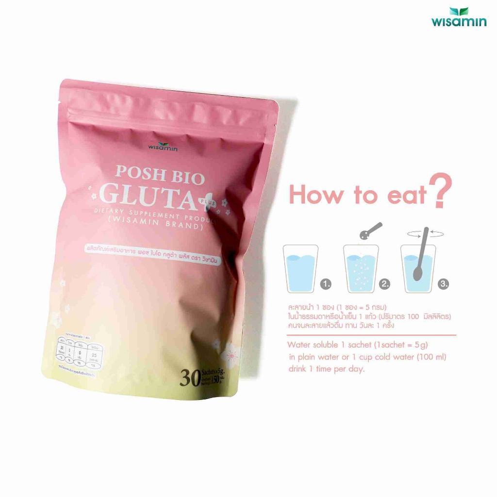 POSH BIO GLUTA PLUS ผลิตภัณฑ์เสริมอาหาร พอช ไบโอ กลูต้า พลัส (ตราวิษามิน) จำนวน 1 ถุง บรรจุ 30 ซอง