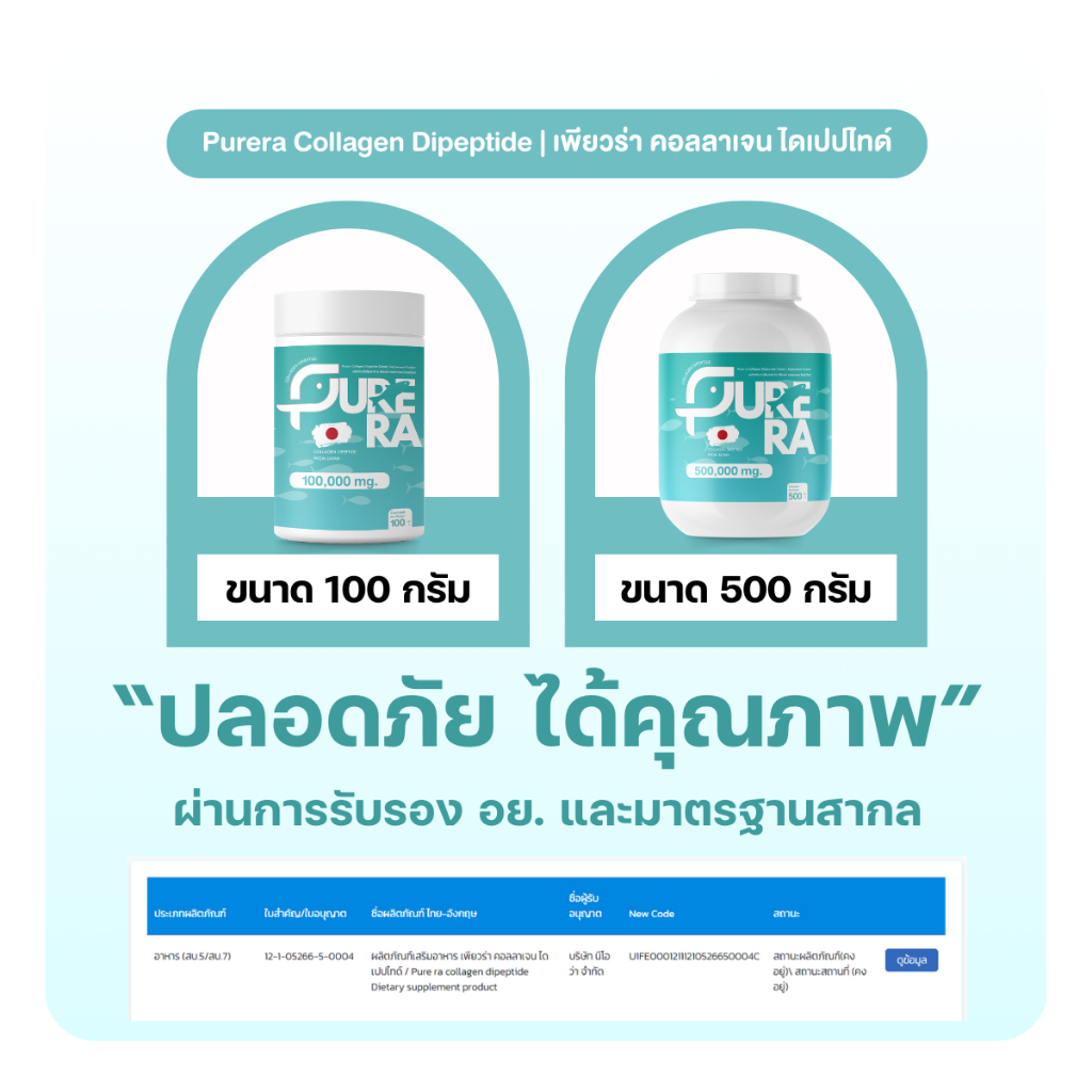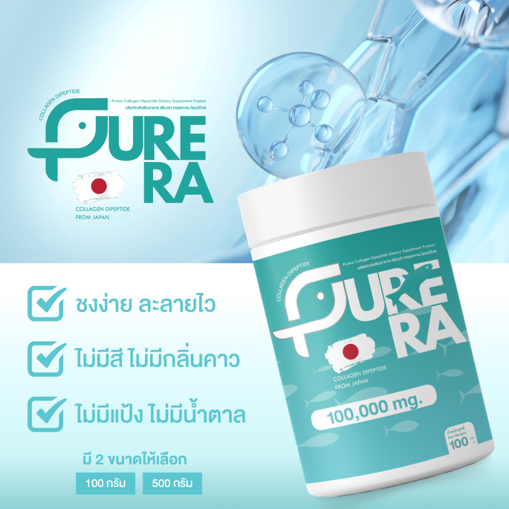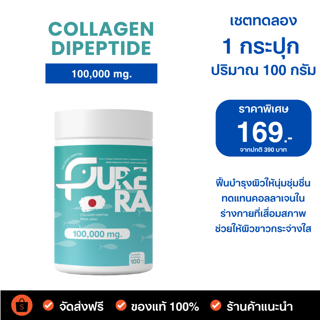 Purera Collagen Dipeptide – เพียวร่า คอลลาเจนไดเปปไทด์ คอลลาเจนเพียว แท้ 100% (ขนาด 100 กรัม)