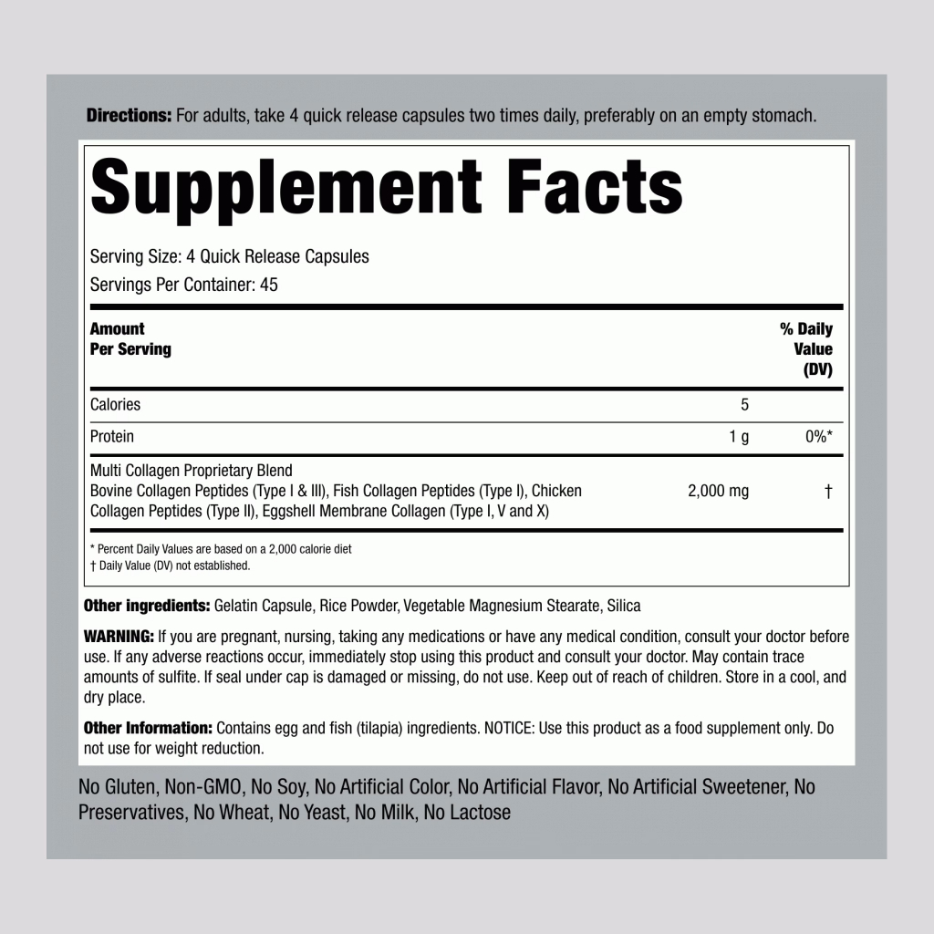 Piping Rock Collagen 5 ชนิด | Multi Collagen 2000mg | 180 แคปซูล | แท้พร้อมส่ง