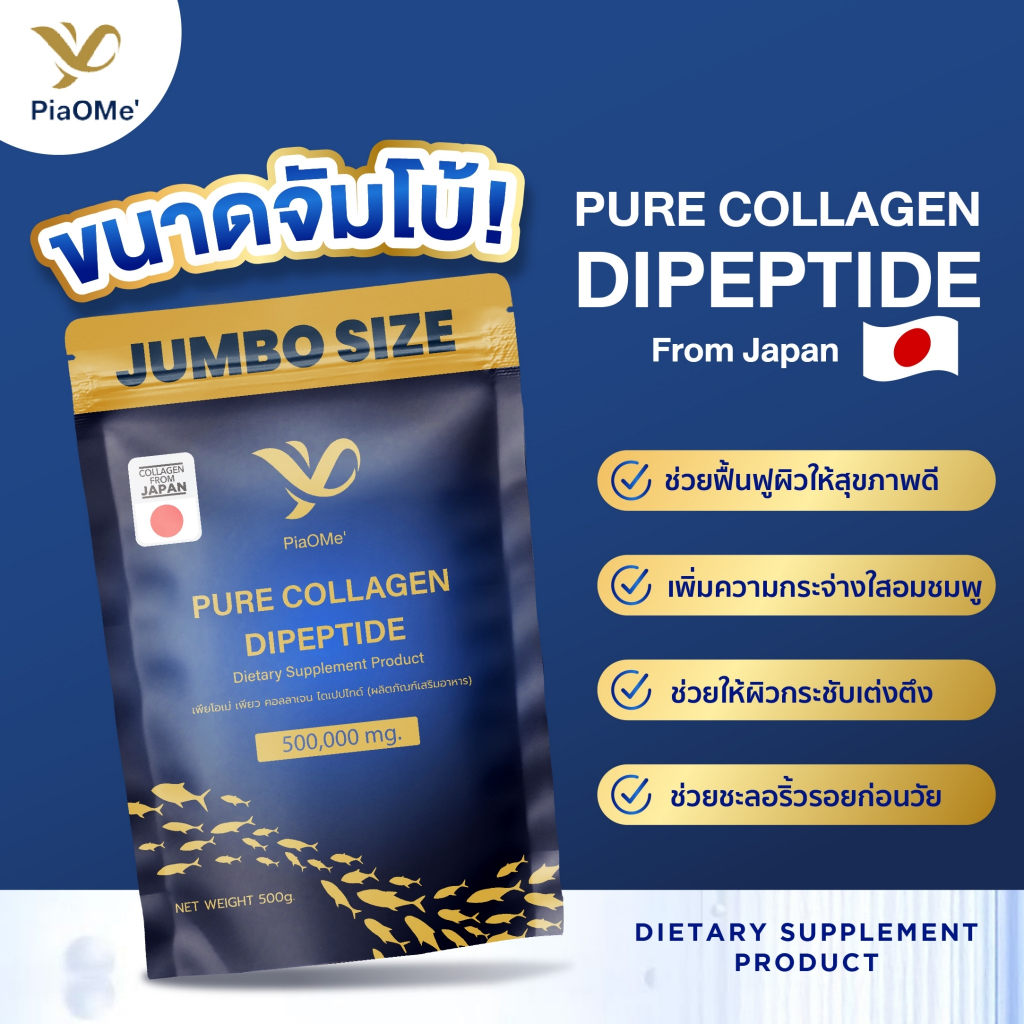 PiaOMe’ PURE Collagen Dipeptide JUMBO เพียว คอลลาเจนไดเปปไทด์ จัมโบ้ 500,000mg. ดูดซึมไว ไม่คาว