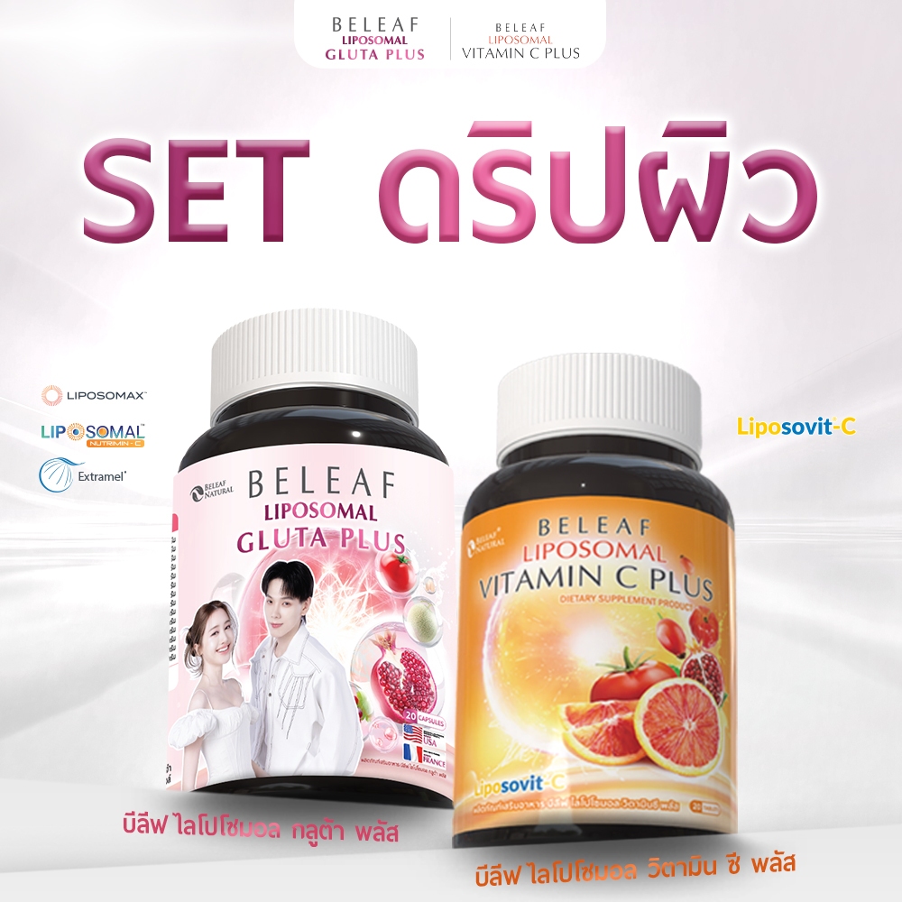 Set สุดคุ้ม ( 1 แถม 1 ) บีลีฟ ไลโปโซมอล กลูต้า พลัส + บีลีฟ ไลโปโซมอล วิตามินซี พลัส