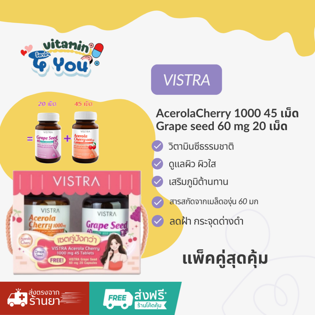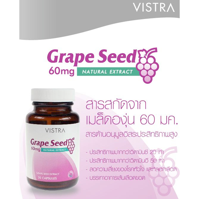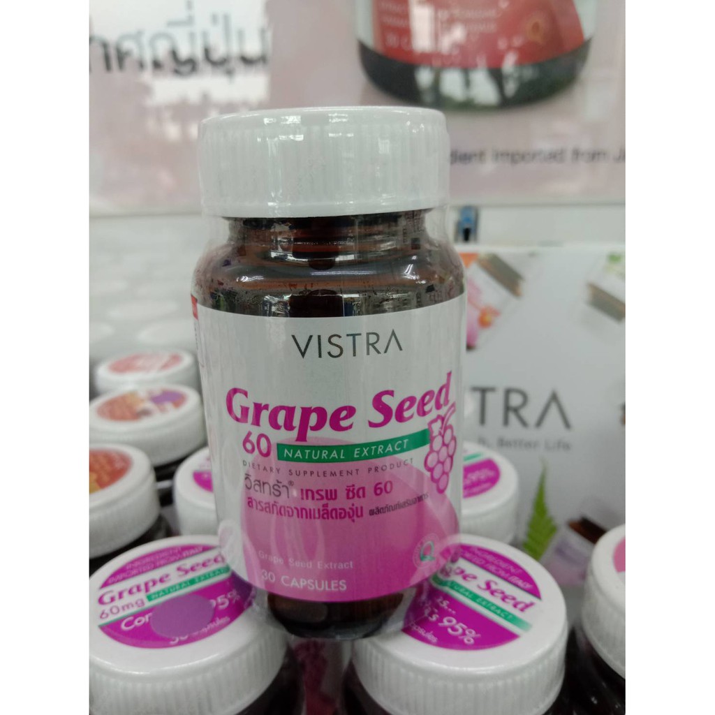 Vistra Grape Seed Extract 60 Mg 1 ขวด 30 เม็ด ต้านอนุมูลอิสระ ฝ้า กระ จุดด่างดำ ผิวกระจ่างใส รอยสิว