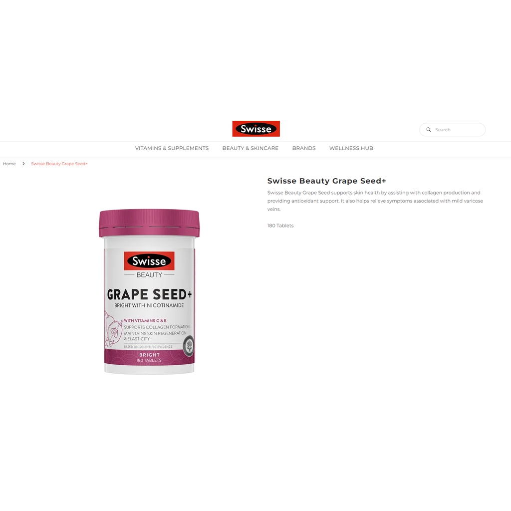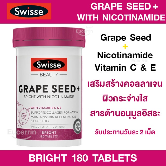Swisse Beauty Grape Seed+ Bright with Nicotinamide 180 Tablets สารสกัดจากเมล็ดองุ่น เกรปซีด