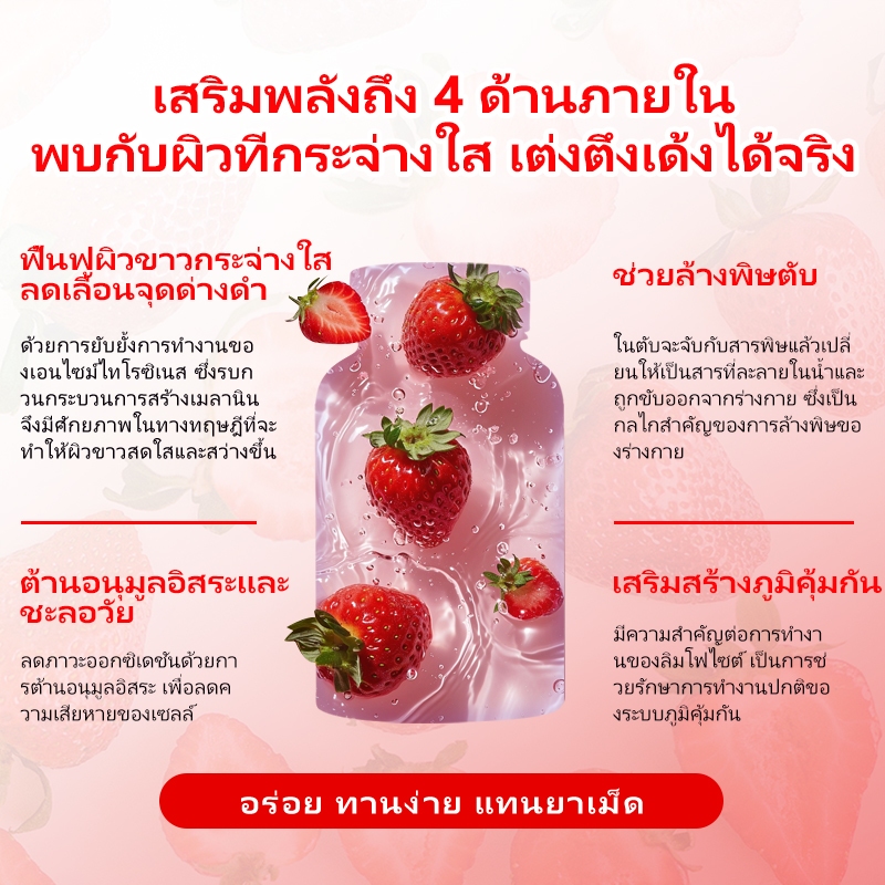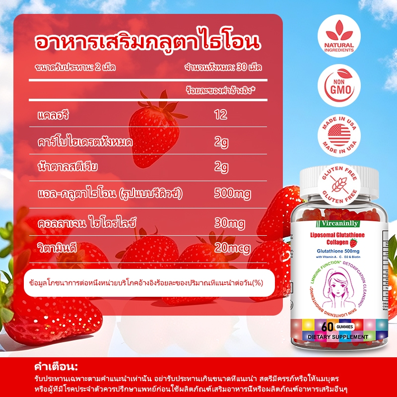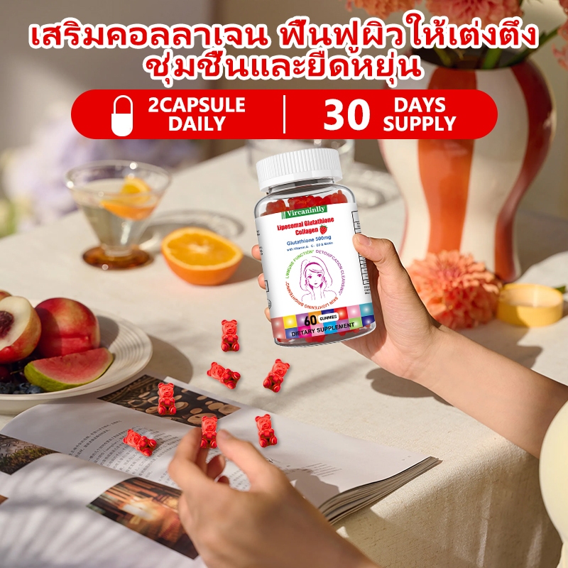 Vircaninlly Glutathione Gummies ผิวขาวกระจ่างใส ลดเลือนริ้วรอย | 60 เม็ด | รสสตรอว์เบอร์รี