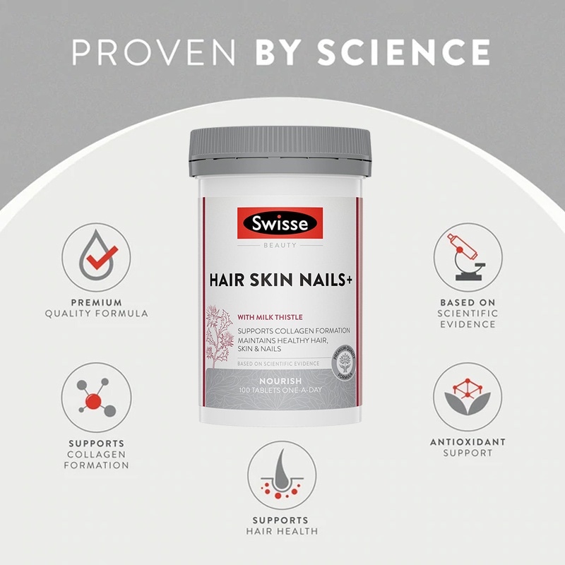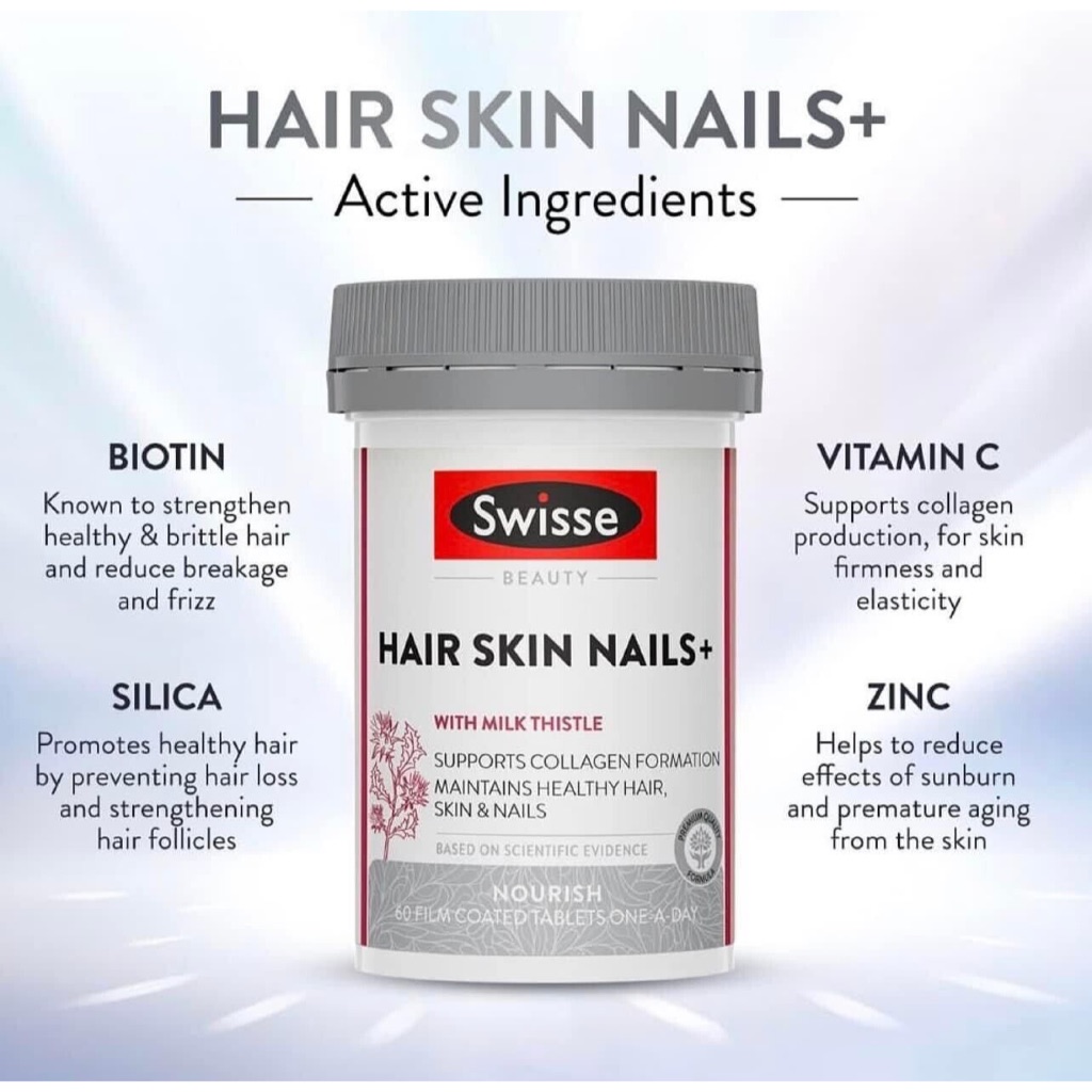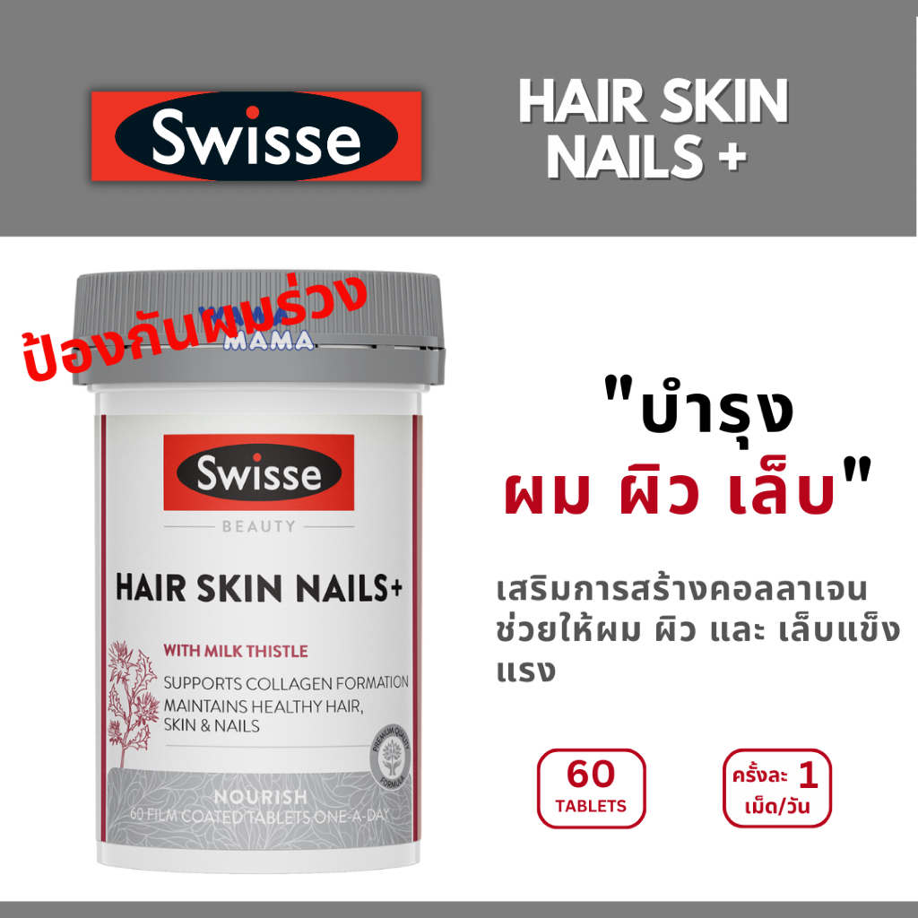 Swisse Hair Skin Nails+ วิตามินผมร่วง บำรุงผม ผิว และเล็บ 60เม็ด EXP07/2027