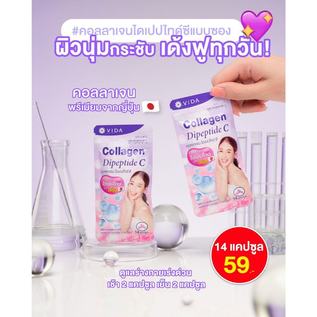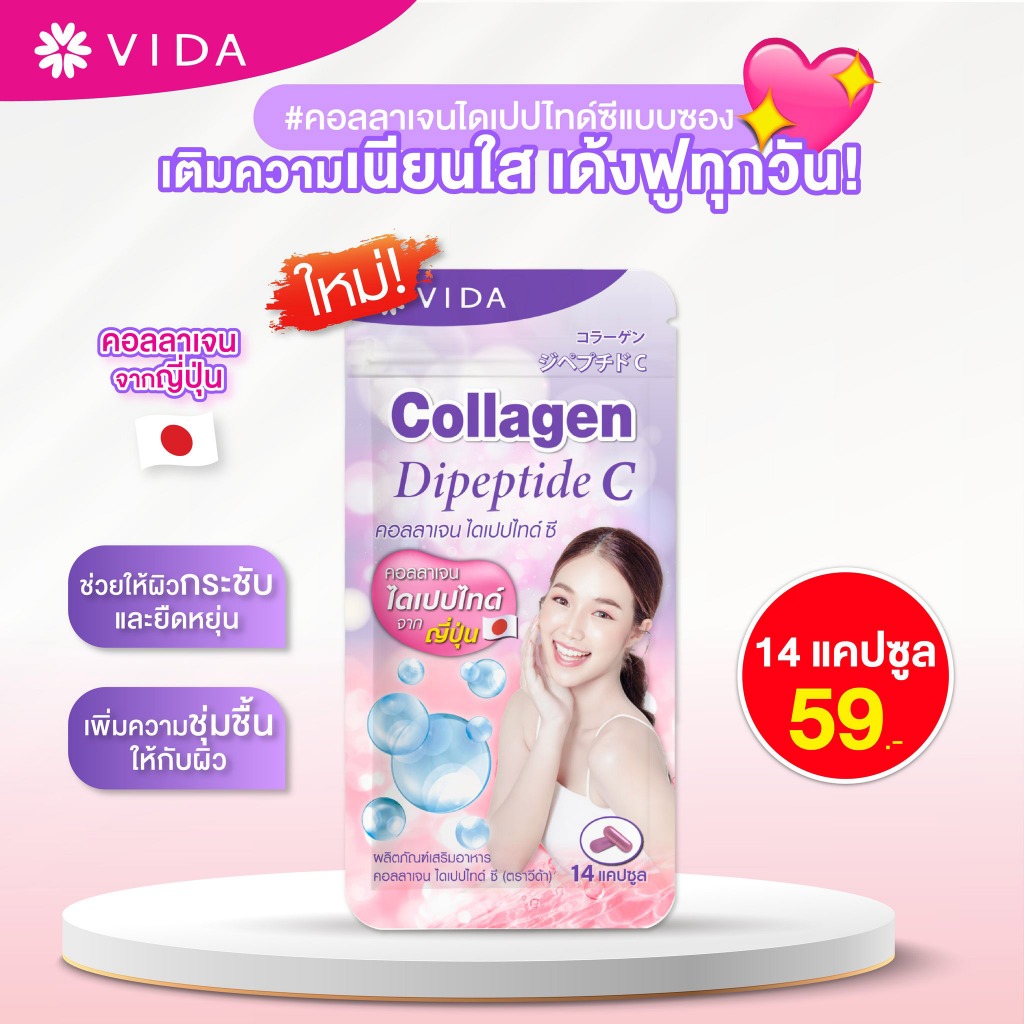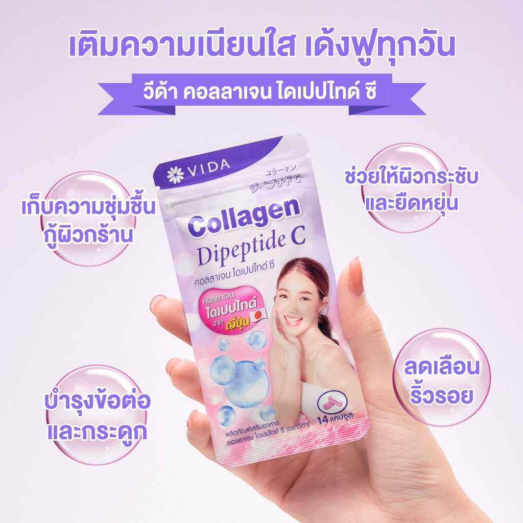Vida Collagen DiPeptide C วีด้า คอลลาเจน ไดเปปไทด์ ซี [14 แคปซูล] พรีเมี่ยม คอลลาเจน วิตามินซี