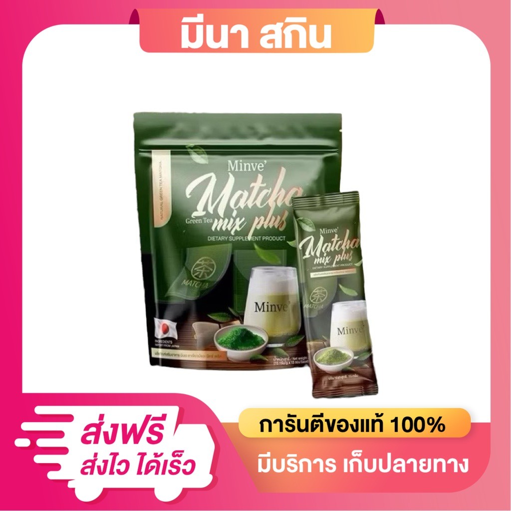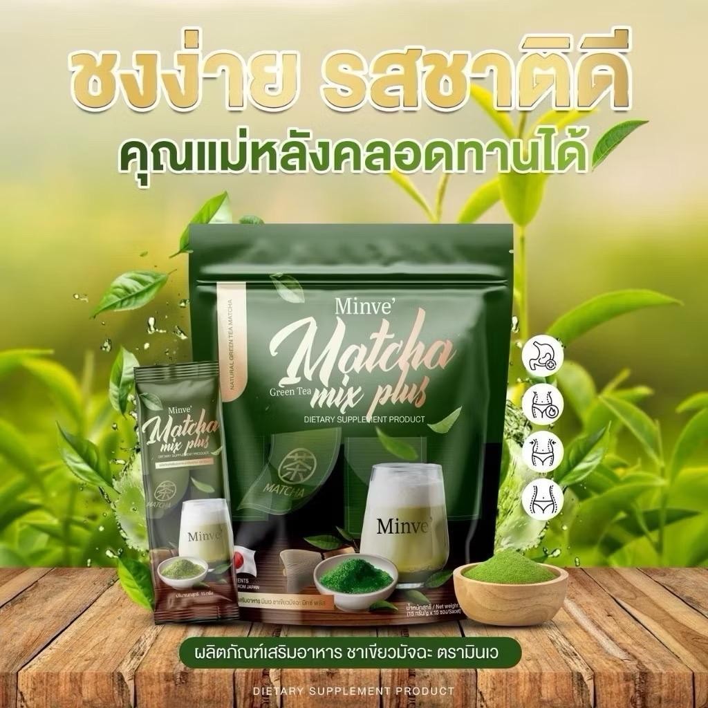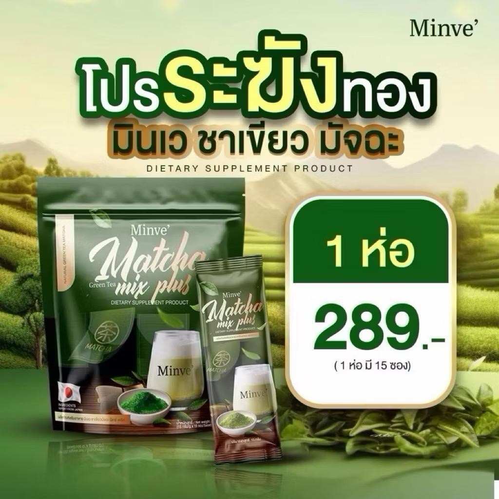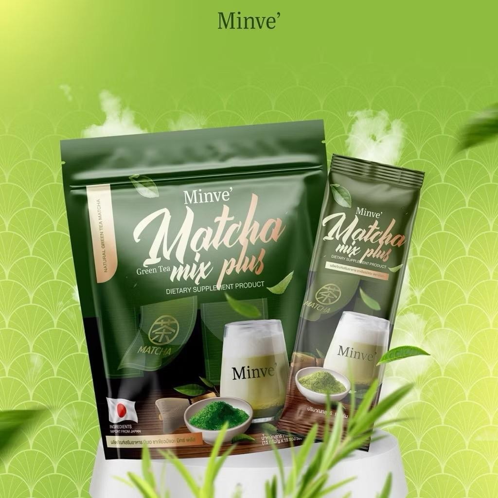 มินเว ชาเขียวมัทฉะ มิกซ์ พลัส Minve ชาเขียวขนม ชาเขียวมี๊หนม 1 ห่อ 225g.